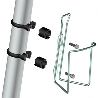 台座がないパイプ部にボトルケージを取り付けるためのクランプバンド。
