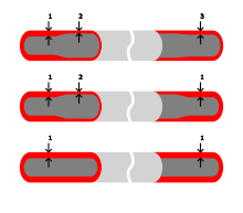 シングルバテッドはパイプの片端を厚くした加工のものです。例えば太いところが0.8mmでそれ以外は0.5mmで構成されているものになります。フレームではシートチューブに使われることが多く、BB側に厚くなっている側を結合させます。