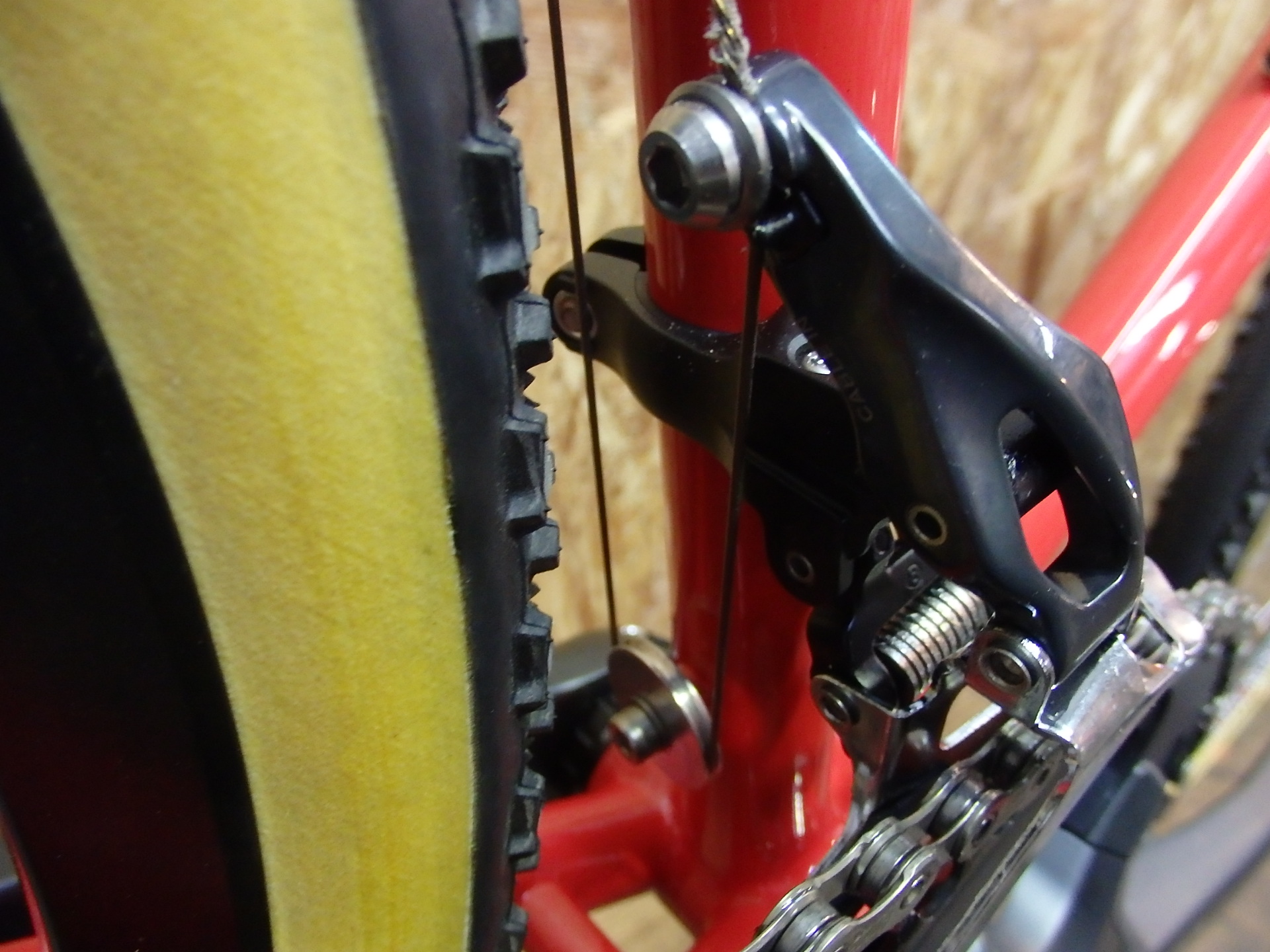 フロント変速は、シートチューブ下部へ滑車をつける形で。