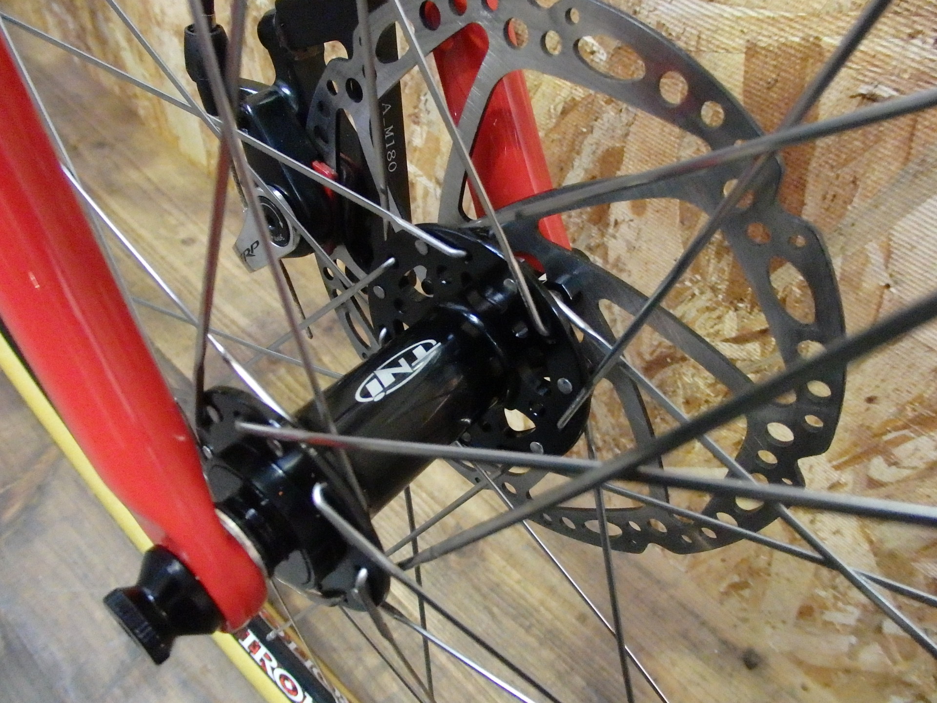 ホイールは、TNIエボリューションDISCハブに、 NOTUBES IRON CROSS、SAPIM CX-RAYスポーク 28Hで組んだホイール。