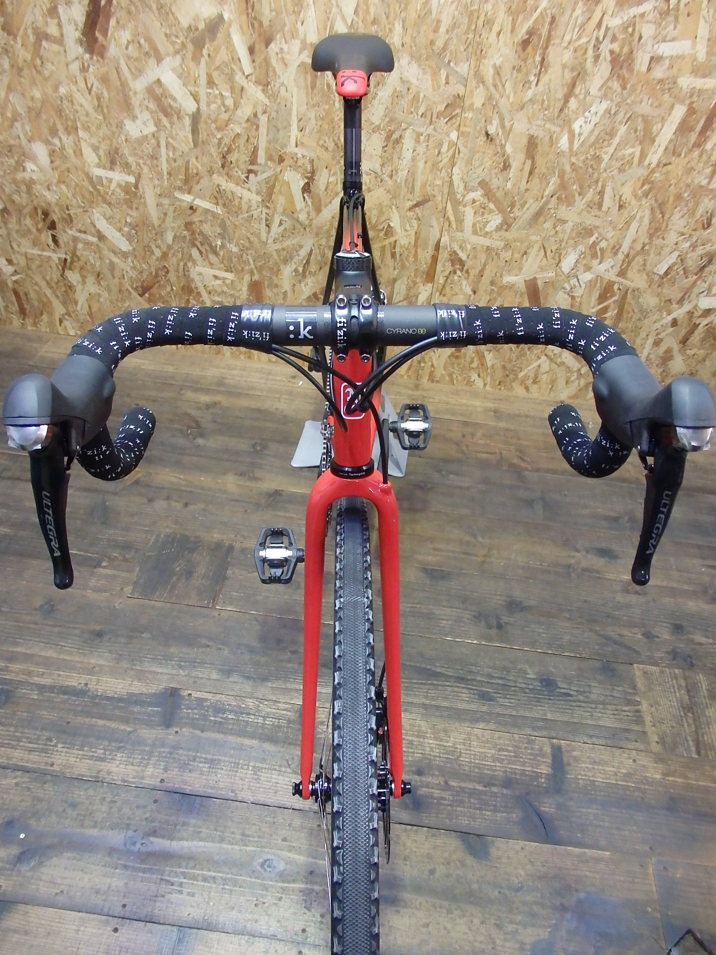 ワイヤー類はシクロクロスお馴染み、路面からの泥防止の為、トップチューブから。