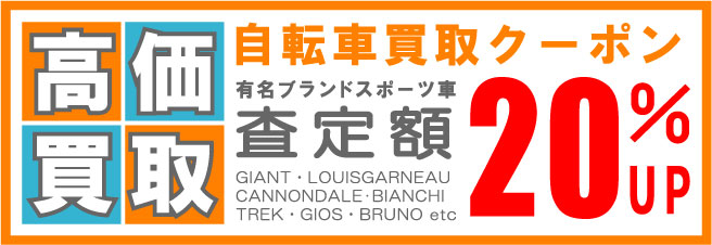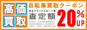 *こちらのバナーをプリントアウト・もしくは店頭にてご提示下さいませ。通常査定額の20%UPで買取・下取りいたします!
