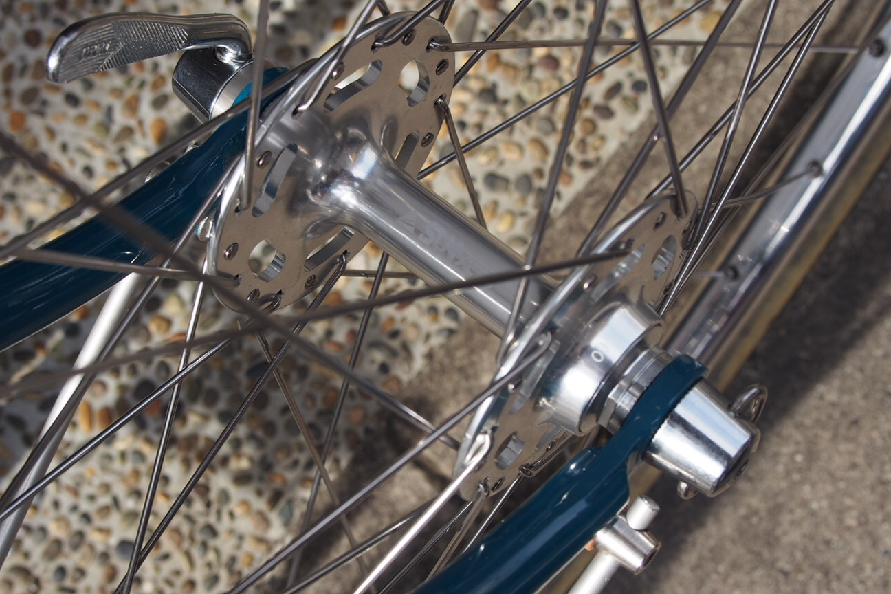 今ではもう手に入らないIDEALのサドルと、ビンテージな雰囲気を醸し出すポリッシュ仕上げのパーツ類のアッセンブルが何とも格好良いですね!。