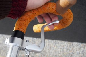 ブレーキレバーにはある種ギドネットレバーの進化版ともいえましょうか、【DIXNA/ディズナ ジェイクルーレバー(¥6.300-税別)】を採用。ドロップハンドルのトップ~ショルダー部の位置からブレーキングできます。もちろん通常のSTIレバーの補助レバーとしても使用可能。