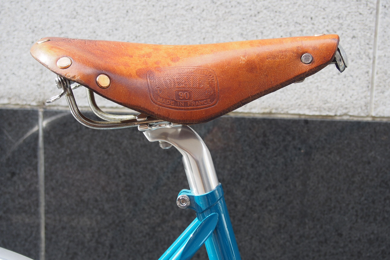 使い慣らされた味のあるサドル+機能性を確保する現行のパーツで完成車へ。