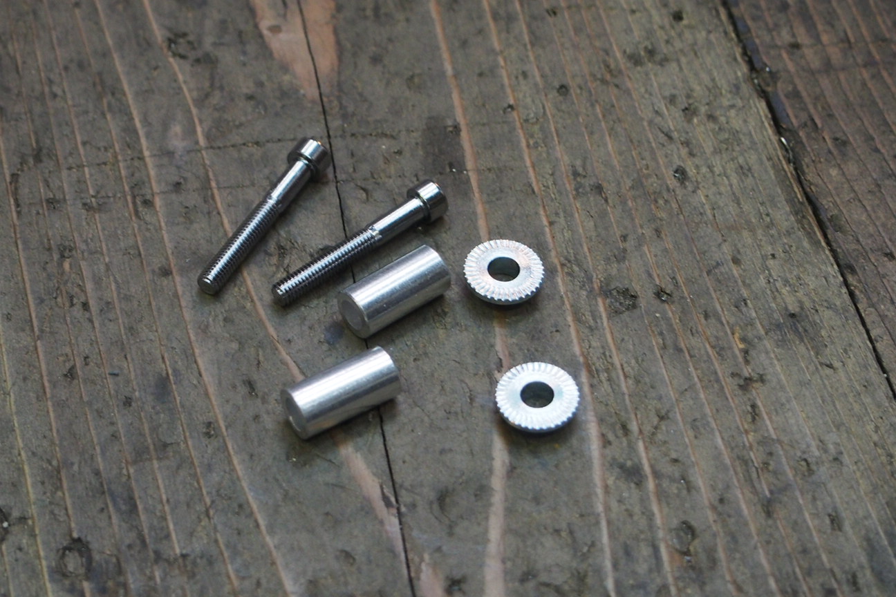 フェンダーダボへの取り付け、クイックレリースで直接ハブ軸を取り付け出来る、延長ボルト&ワッシャーなど標準用意