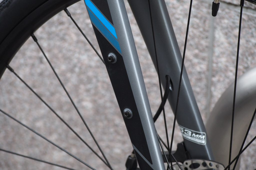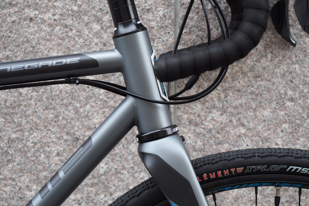 細身のフォルムからしなりを生みしなやかな乗り味かつ安心感あるクロモリフレームをベースに、コラムまでカーボンにより軽量かつテーパーヘッド採用で剛性高いカーボンフォーク(フォークサイドにはボトルゲージダボ穴も用意!)。またねじれを抑制し適正な推進力とコーナリングの安定性を提供する12mmフロントスルーアクスルを採用。そこに質実剛健なつくりでお馴染みのSHIMANO TIAGRA(2x10SPEED)コンポーネントをメインにアッセンブルすることにより抜群のコスパで提供される【JAMIS レネゲードEXPAT】。正直さほどレーシーに一秒でも速く走るキャラクターの自転車ではありませんので、コンポはTIAGRAで充分ですね!