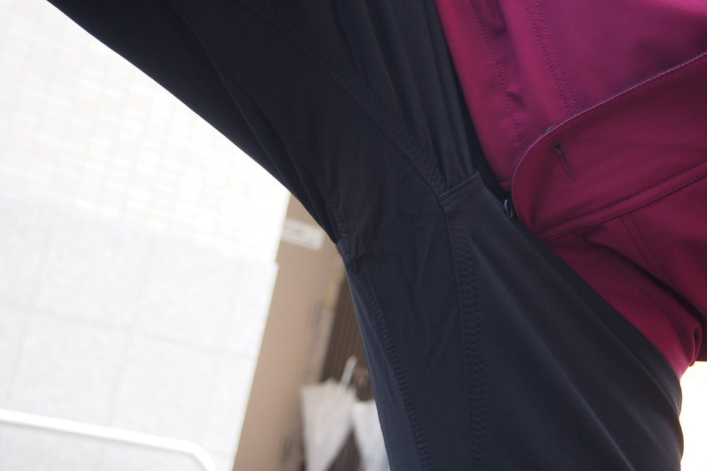 シルエットは足に沿う形のスリムなデザインで乗車時のバタつきも少なく仕様。SWRVEのパンツといえばな立体裁断と伸縮性抜群の4WAYストレッチでサイクリング時の足回りの動きを遮る事無くストレスフリーに楽しめます。