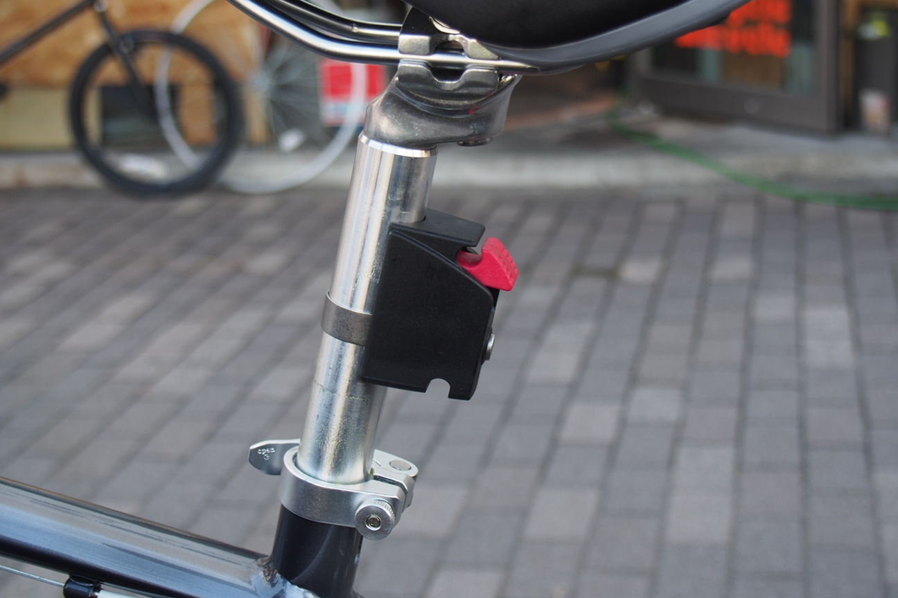 取り付けはKLICKfixのアタッチメントをシートポストに固定。そこにバッグのレールを引っ掛けるという実に単純な仕組み。レールやアタッチメントの重量を無視すれば付け外しだけなら一番楽なバッグでは無いでしょうか?