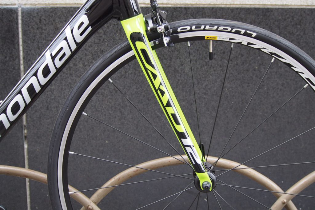 パーツ選択はこのグレードではもはや定番になりつつあるSHIMANO5800系1051をメインに採用。5700からアップグレードした際にリアの11速化などが行われ変速性能・ブレーキ性能、どこをとっても高い水準でまとまってくれているのでレースでの使用でも問題なく、サイクリングでも走る楽しさを感じる事が出来ます。クランクのみはCANNONDALEオリジナルということですがULTGRAと同様かそれ以上の軽量さとBB30による高い剛性は使用の上でも問題なくデザイン面でもアリでは無いでしょうか?
