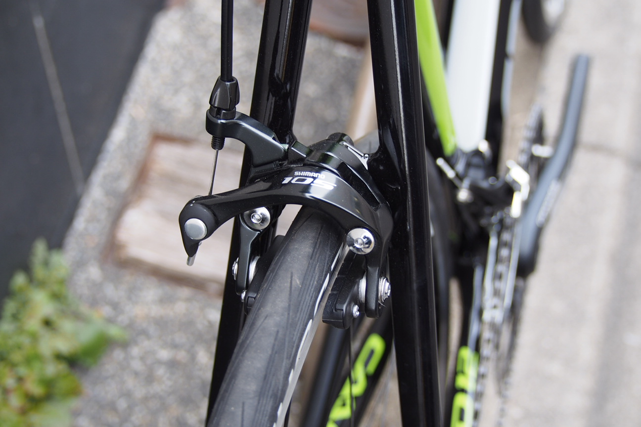 ホイールにはMAVIC AKSIUMを。重量こそありますが、ストレートプルスポークで剛性もバッチリ出ており耐久性の高さにも定評あるホイールですのでロングライドからイベント・レースまでガシガシ使っていただけます。