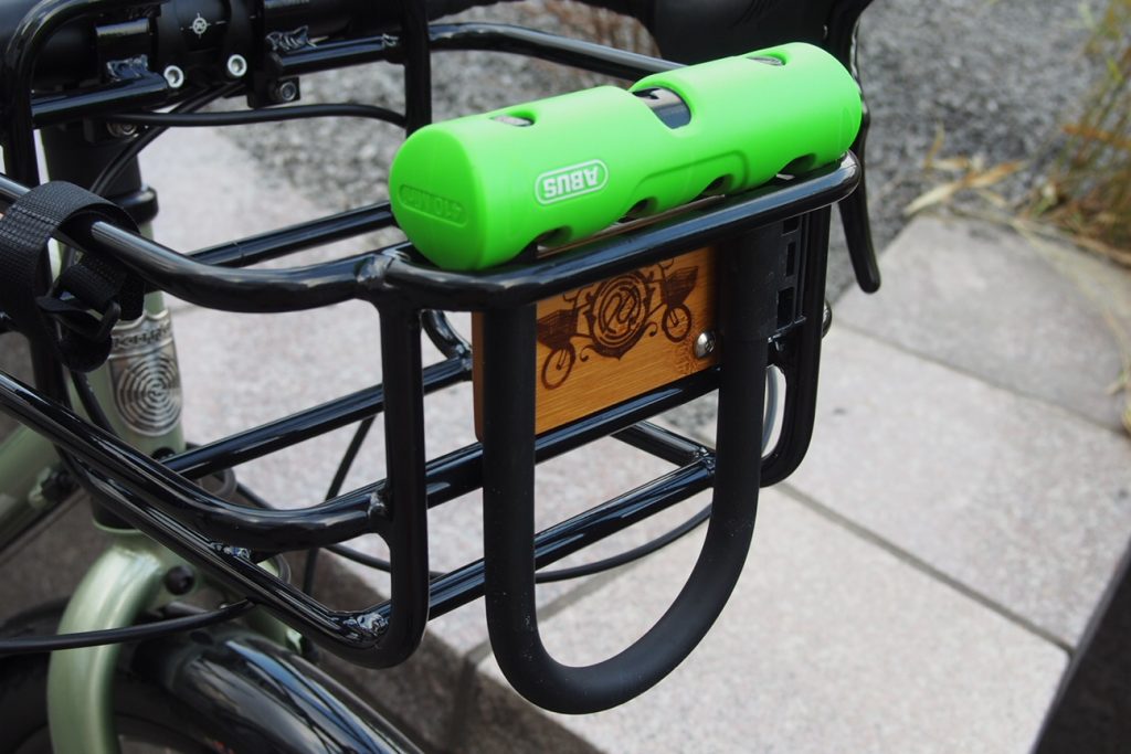 前面にはU字ロックを差し込むスペースが用意されており、左側にはライトマウントを装着するためのアイレットも用意されています。