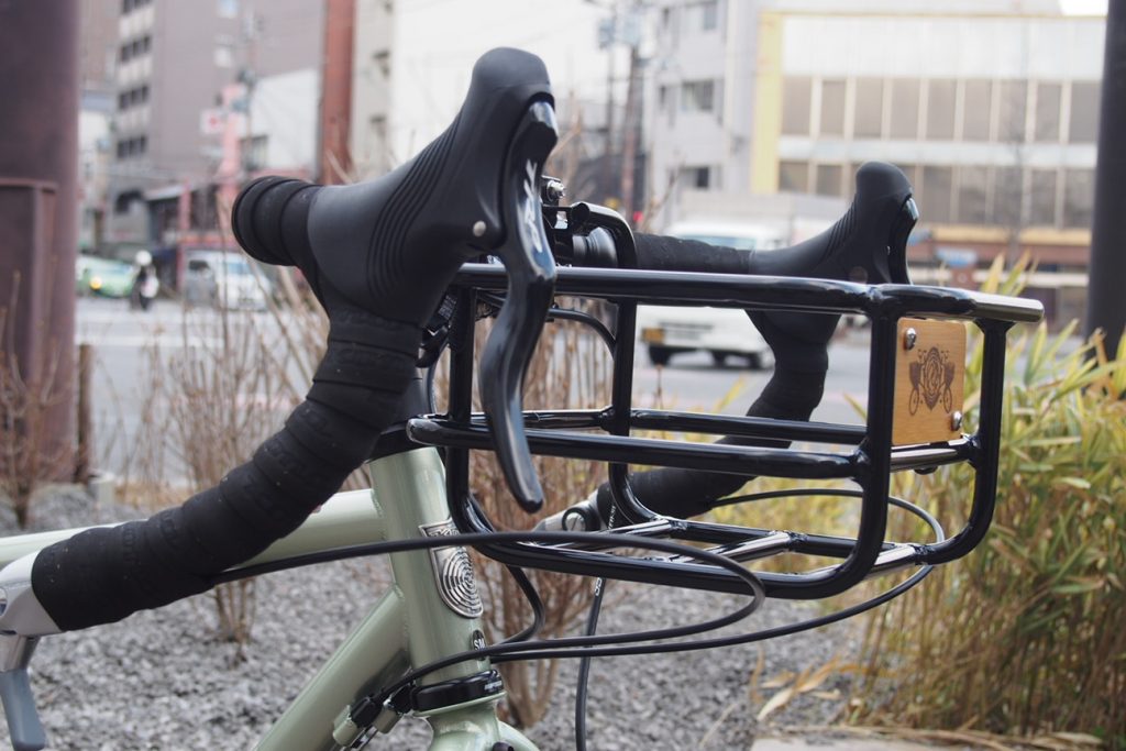 すっきりまとまった&確かな構造/デザイン。フラットバーはもちろん、ドロップハンドルにも装着可能。オンリーワンなバスケット