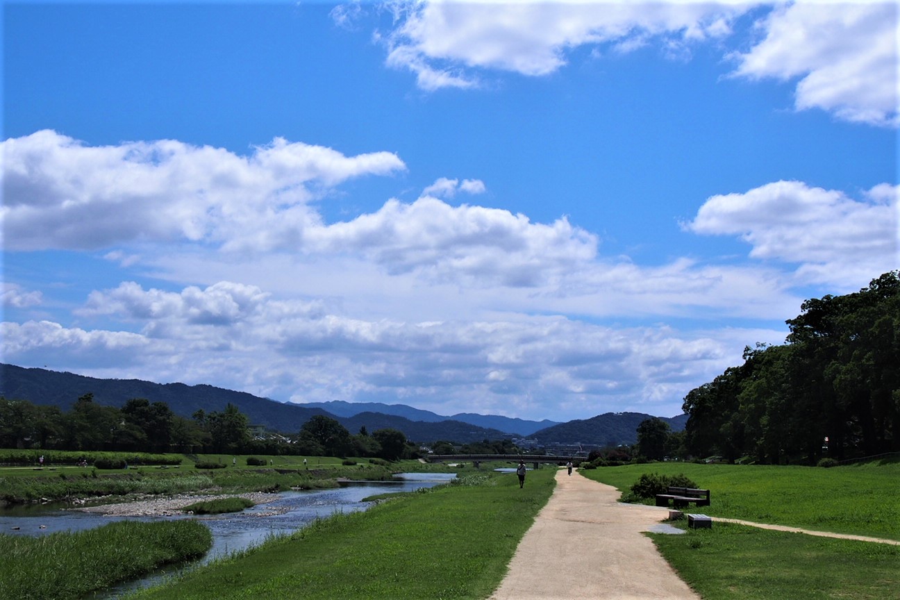 ◎市内中心を縦に賀茂川~鴨川が流れており、信号待ちの手間がない河川敷での移動が可能。