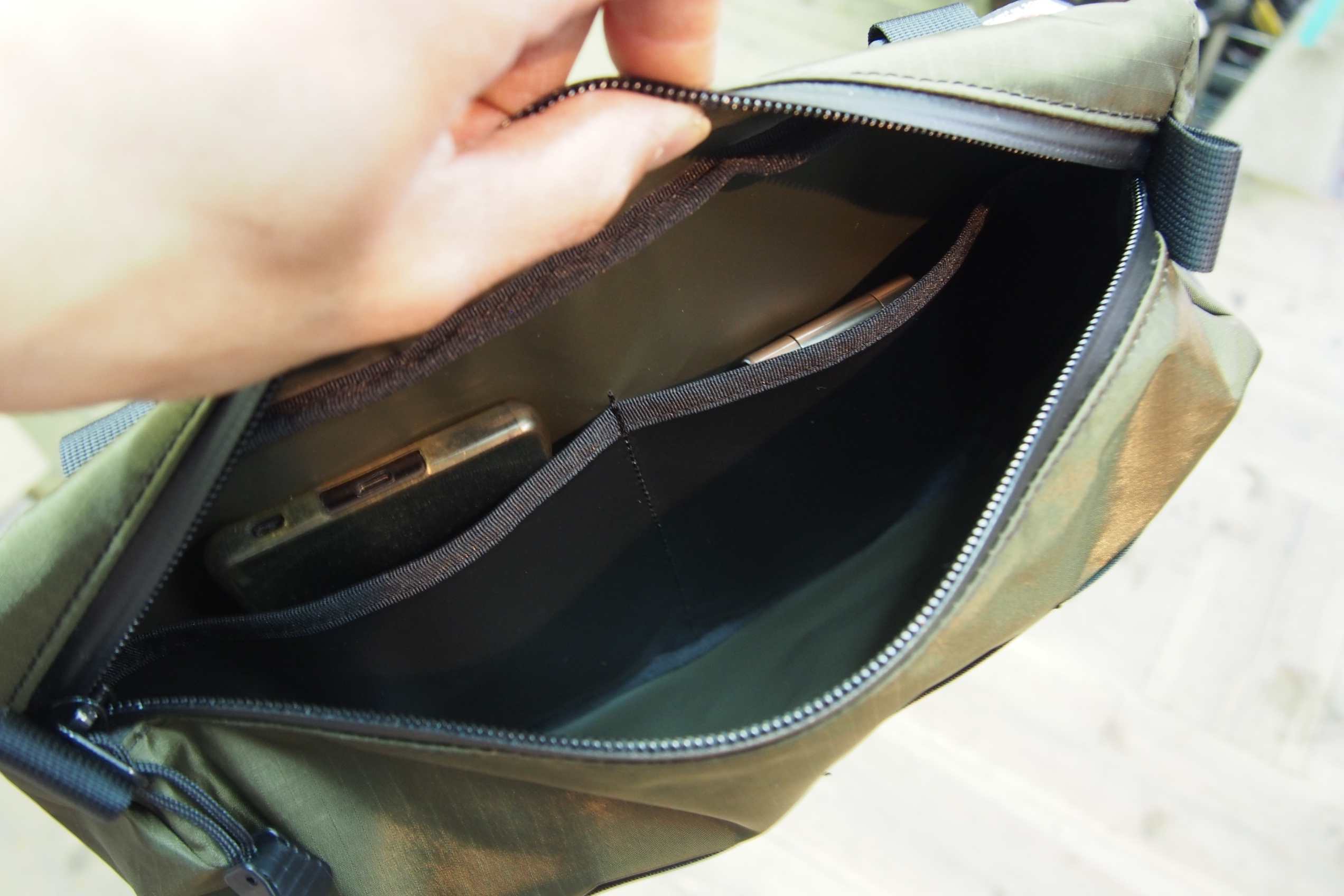 全部外してしまえばこんな感じなのですが、ハンドルバーバッグ最大の弱点だった「出し入れのしにくさ」が一気に解消されています。