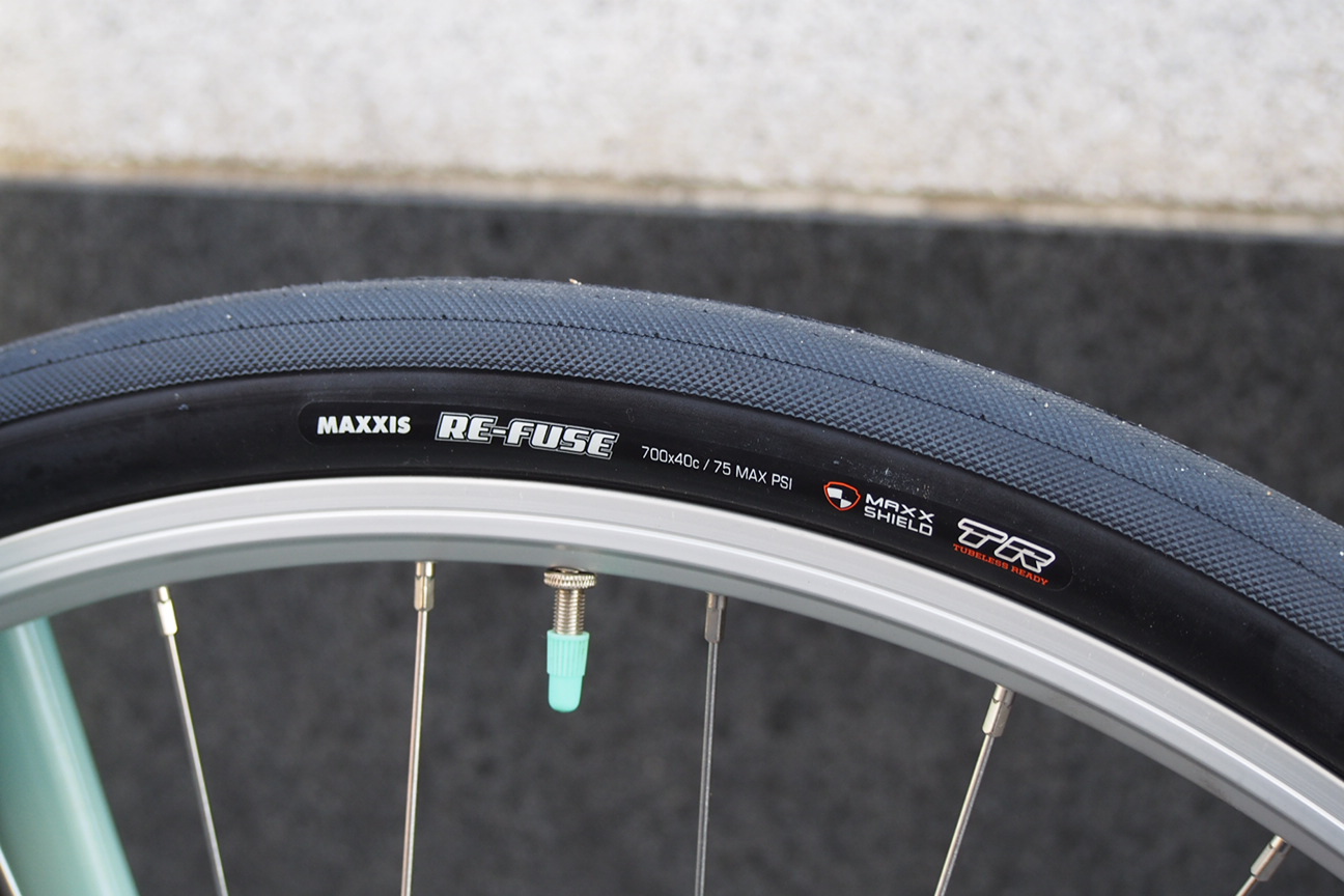 よくある700×28~35cでななく、思い切りのよい40cという極太タイヤにすることで最高の乗り心地も演出。