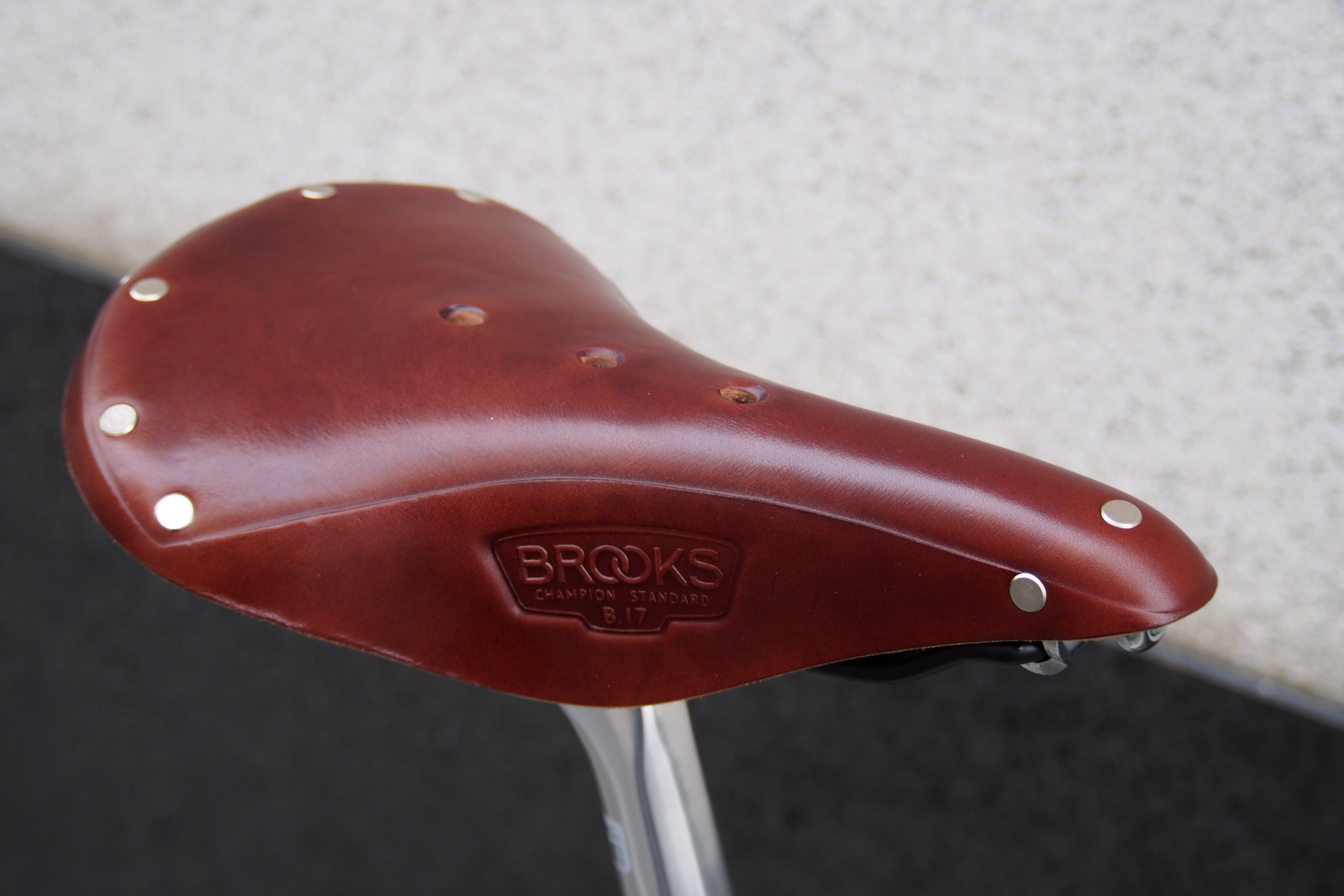 クラシカルなロゴに、Brooks B17レザーサドルが良く映えます。この価格に1万円オーバーのレザーサドルが含まれている、となるとすごくお得◎
