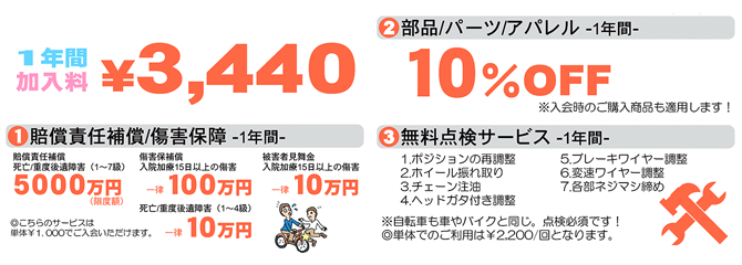 ・自転車ご購入時にのみご加入いただけるサービスです。