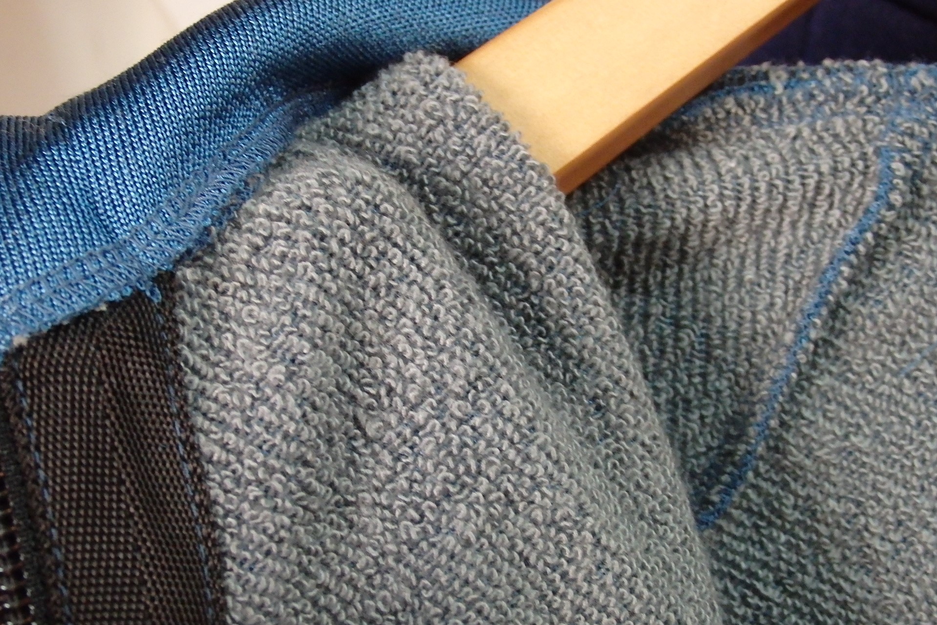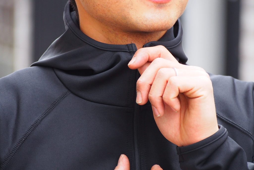 この襟元から数センチあがってからリブとなるCCPならではのフードの作りはもちろん秀逸。