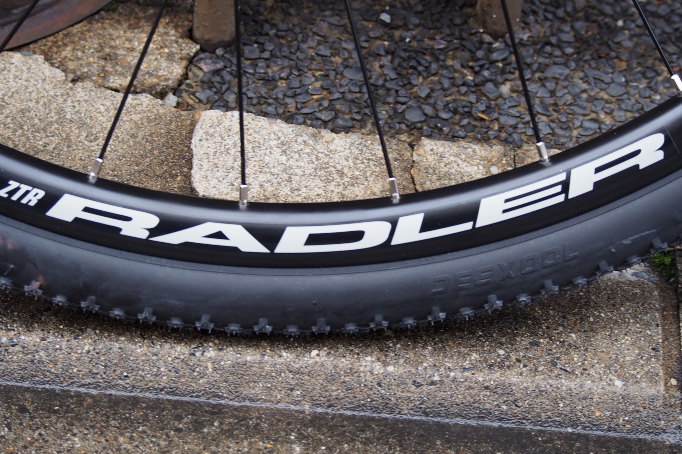 リムにはチューブレスへの換装もOKなNO TUBESブランドのRADLER。軽量のIRONCROSSに比べ、肉厚で頑丈で安心感◎。