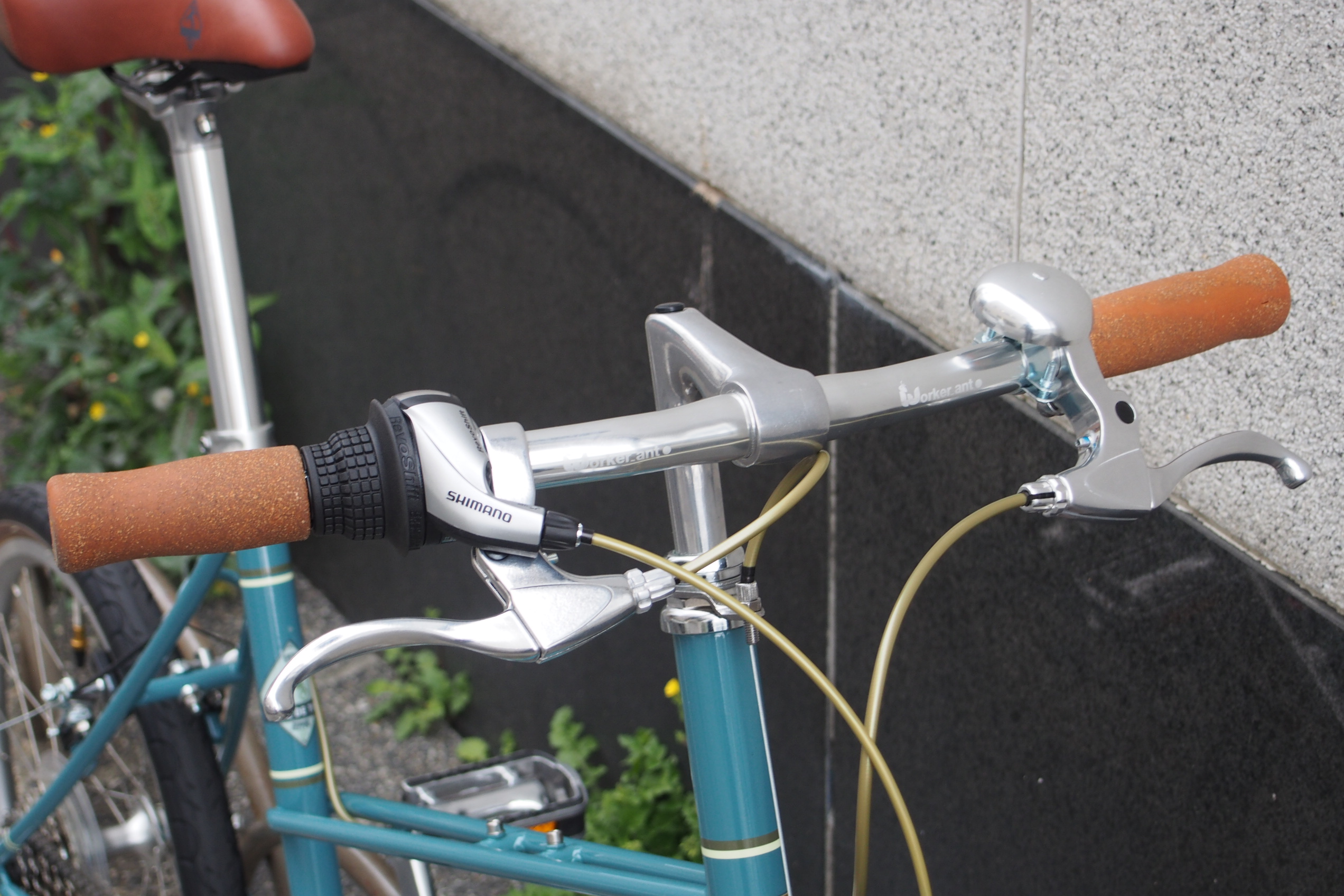 パーツ構成も街乗りを考えた背伸びしすぎない丁度良い具合に。変速もフロントは一枚にすることでトラブルを減らすギア周りとハンドル回りの見た目もスッキリ。リアの変速もグリップタイプで握りやすく直観で変速出来るようになっています。