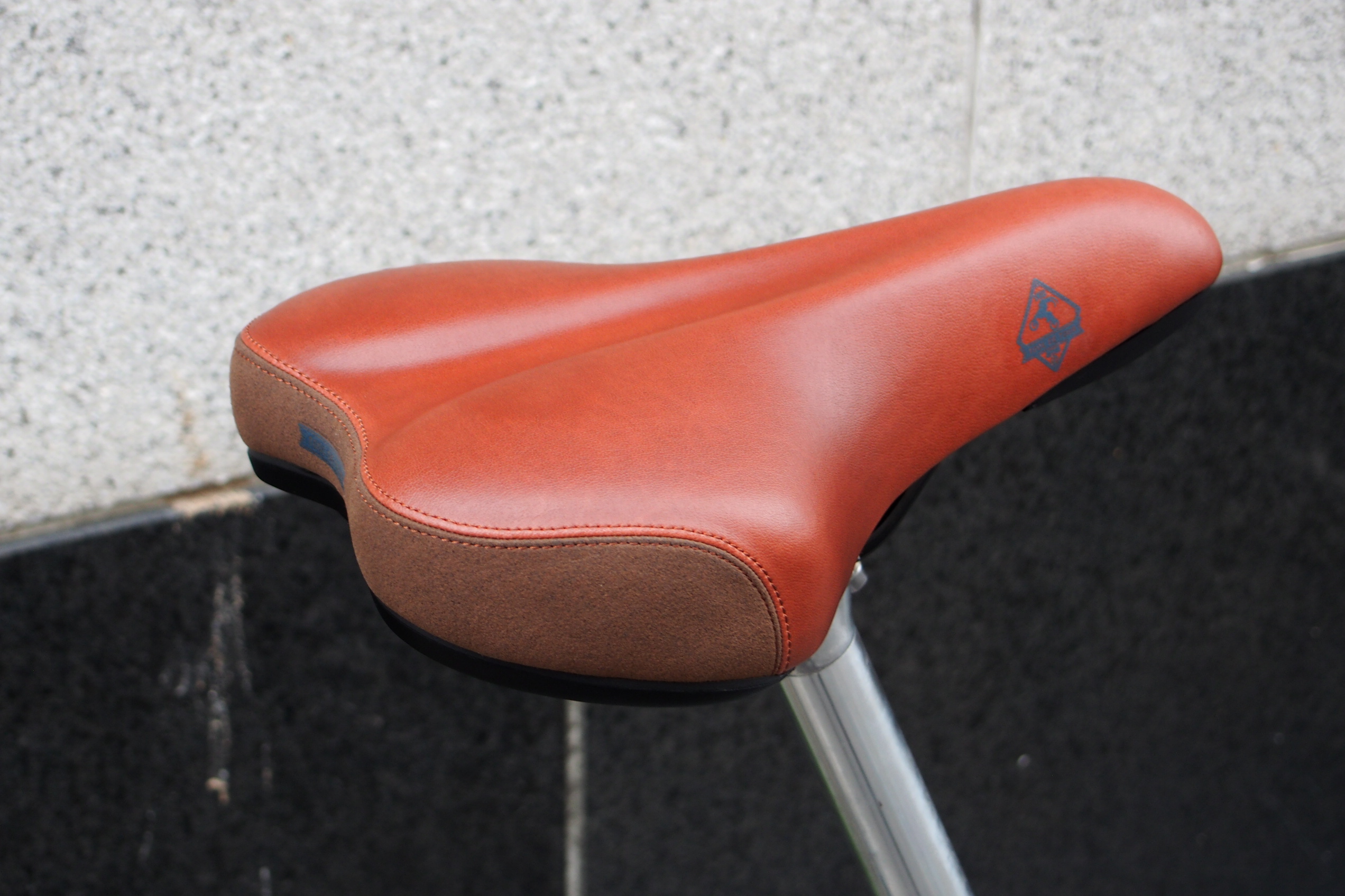 ブラウンサドルにコルク混じりのゴムグリップも見た目によし、触り心地良しで良い塩梅です。