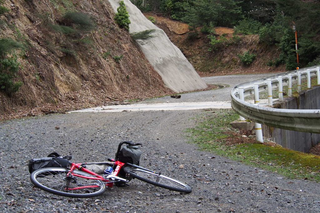 コースは毎度おなじみの花脊峠を越えて京北の山中に散らばる林道・旧道をいくつもまたいでいく感じで。前から気にはなるけど行けていなかった林道を攻めたのですがすごくイイ!アップダウンはキツめですが展望の開けた山沿いを走れるので気分も良く、グラベルも程よい荒さでもう一度行きたいコースでした。