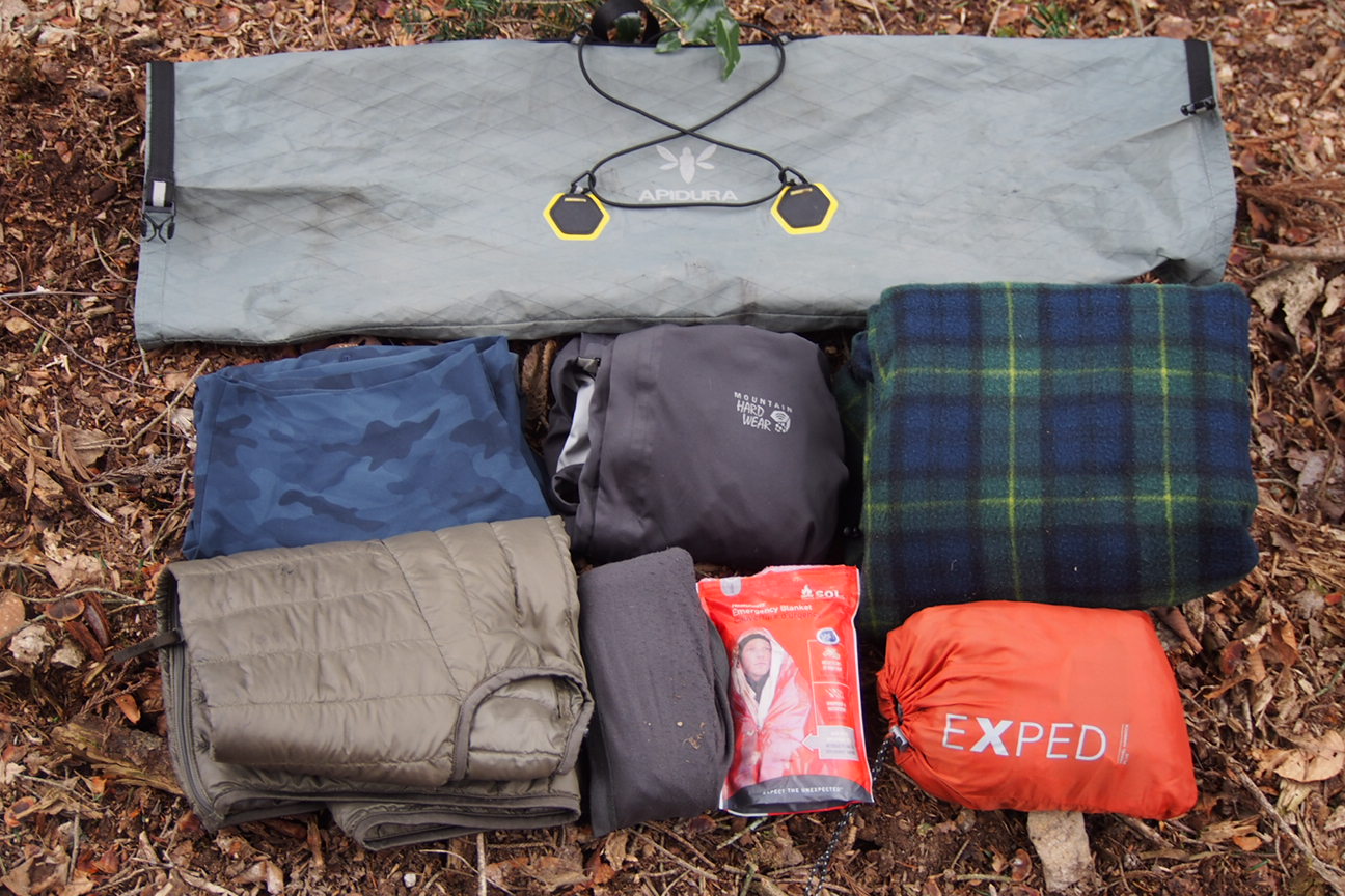 バッグの形をきれいに出すためにハンモックやブランケット・ダウンなどの布ものをまとめて入れて両サイドから圧縮、420mmのハンドルにも収まるサイズになります。