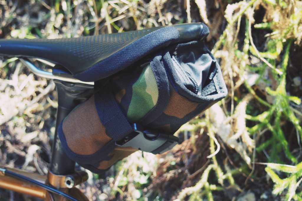 備えあれば憂いなしってなもんで、パンク修理キットや替えチューブ、携帯工具などの荷物を入れておくのに便利なのが当店のオススメアイテムの筆頭格ともいえるバイクパッキングアイテム。