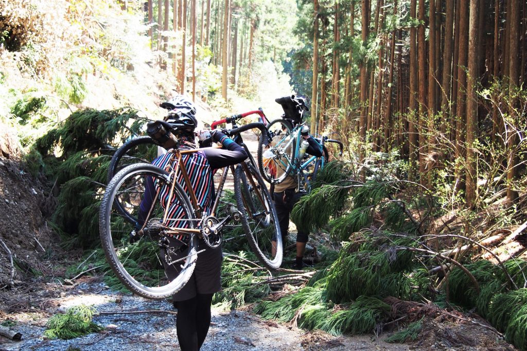 道中大きな木が倒れて道をふさいでることもしばしば。こういった自然の強さを身近に感じれるのもグラベルの良いところ。