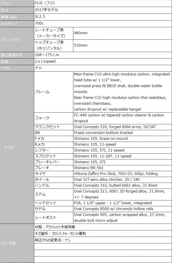 クラストップレベルの軽量フレーム完成車がアウトレットで~!【 FUJI / フジ 2017モデル 】SL2.5 カーボンロードバイク