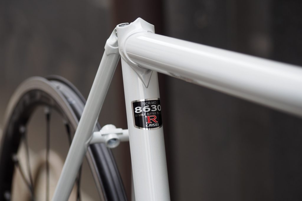 クロモリ鋼にニッケルを加え、粘りを持たせたKAISEI 8630Rパイプをを使用したレーシングフレーム。