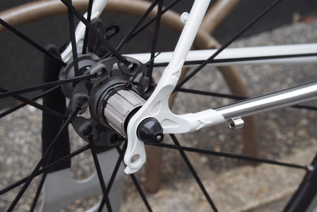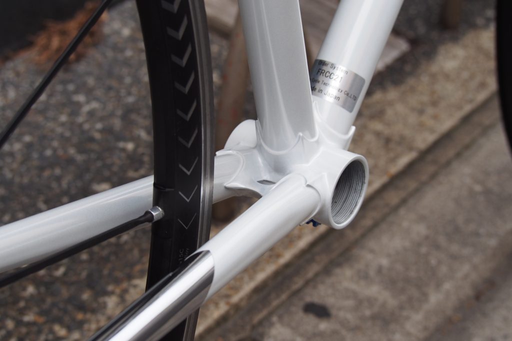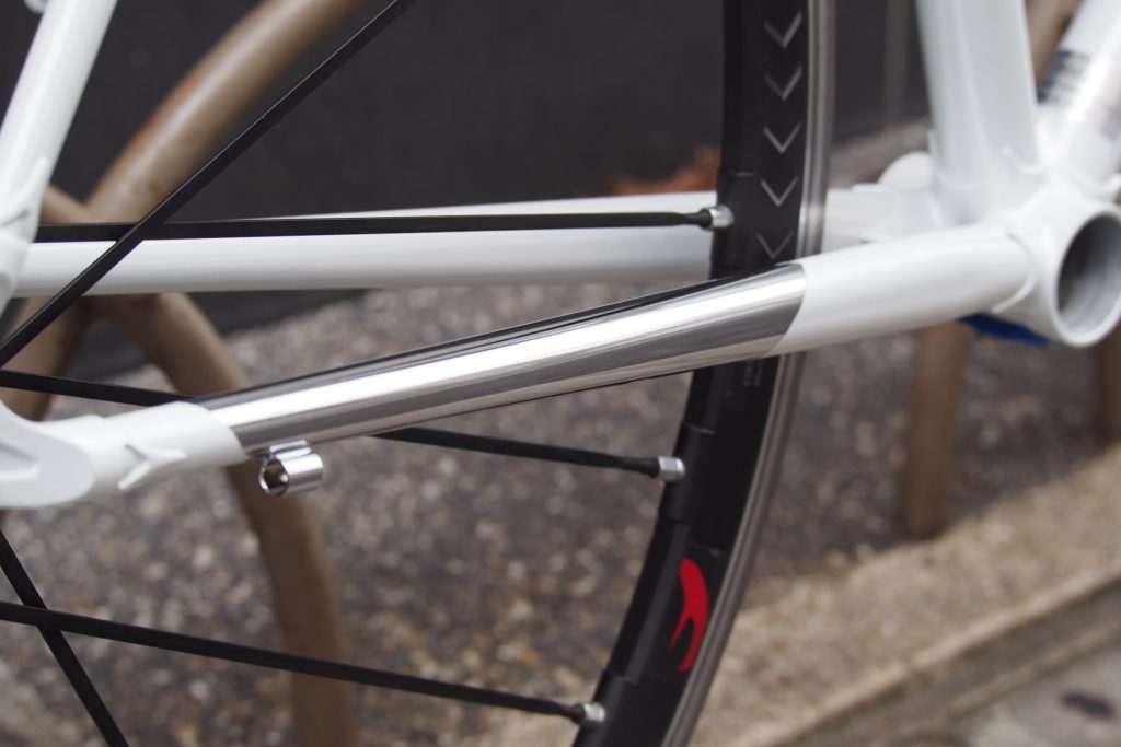 ダウンチューブを31.8、トップチューブを28.6とそれぞれオーバーサイズ化することで硬さを出し、クロモリらしからぬかかりの良さがあります。
