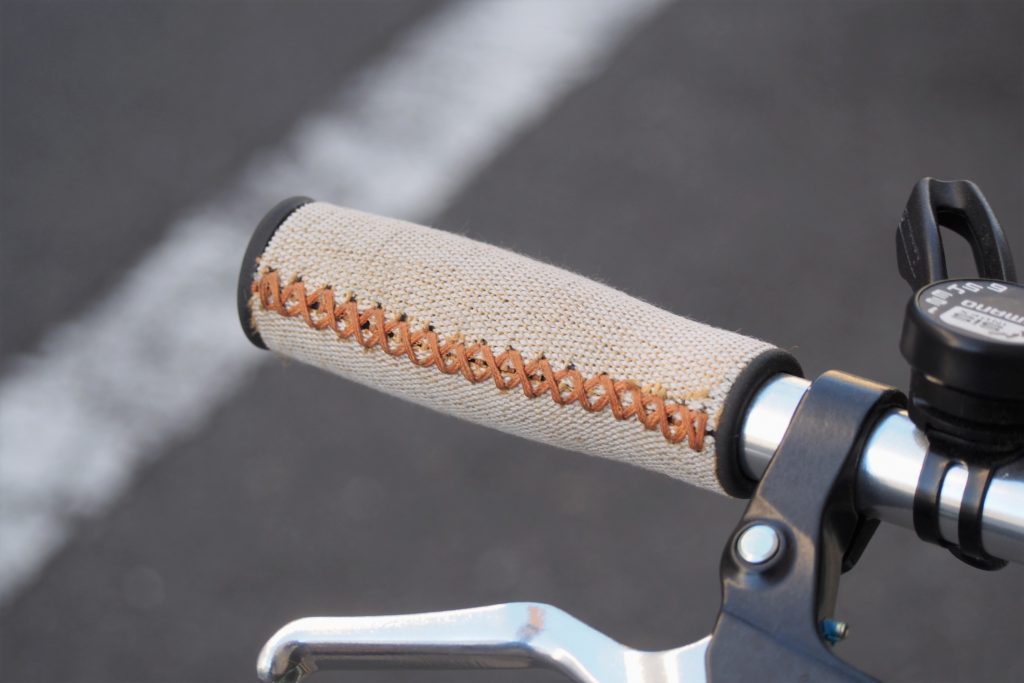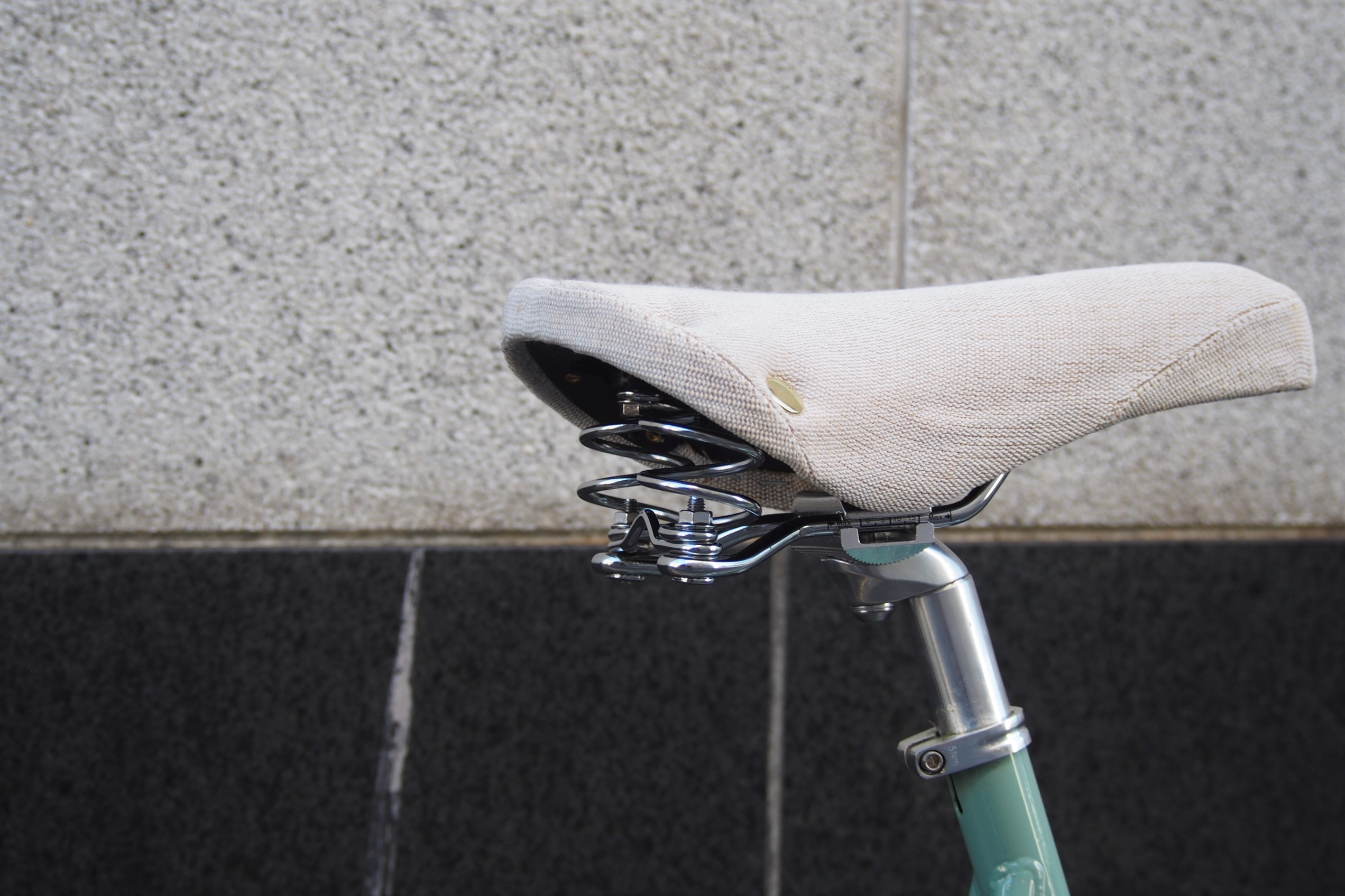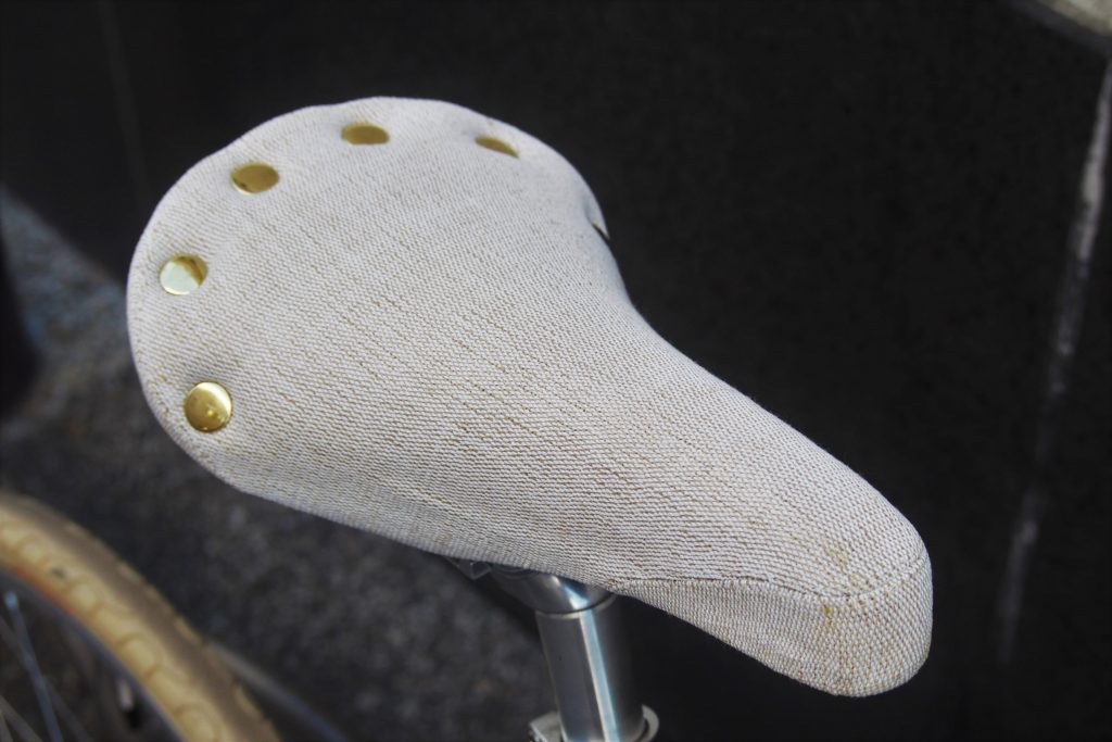サドルはコットンライクな記事に金鋲でクラシカルなルックス。