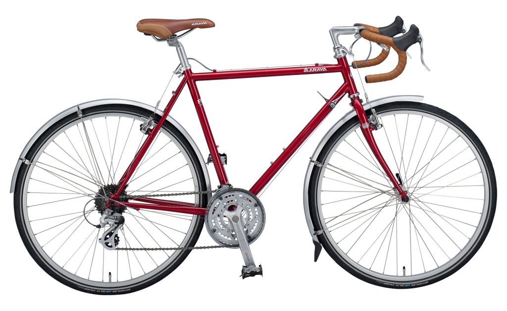 国産の優れたリム製造メーカーであり、自転車ブランドとしてもツーリングバイクを選ぶ時には外せないブランドARAYA。FEDRALは26×13/8サイズのタイヤを装着したクラシックなランドナータイプ。700cサイズの完成車と比べるとスポーツバイクの中ではマイナーなサイズになっていますが小さいホイールサイズによって低身長の方が乗ってもホリゾンタルフレームの形が崩れにくいというのは日本人にとって大きなメリットになるかもしれません。