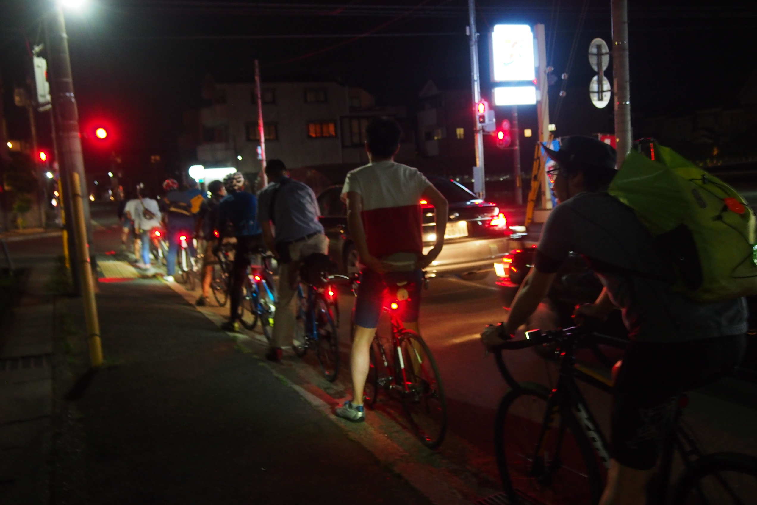 ナイトサイクリングという事でバッチリライトを点けて蛍スポットを目指してゾロゾロ走っていきます。