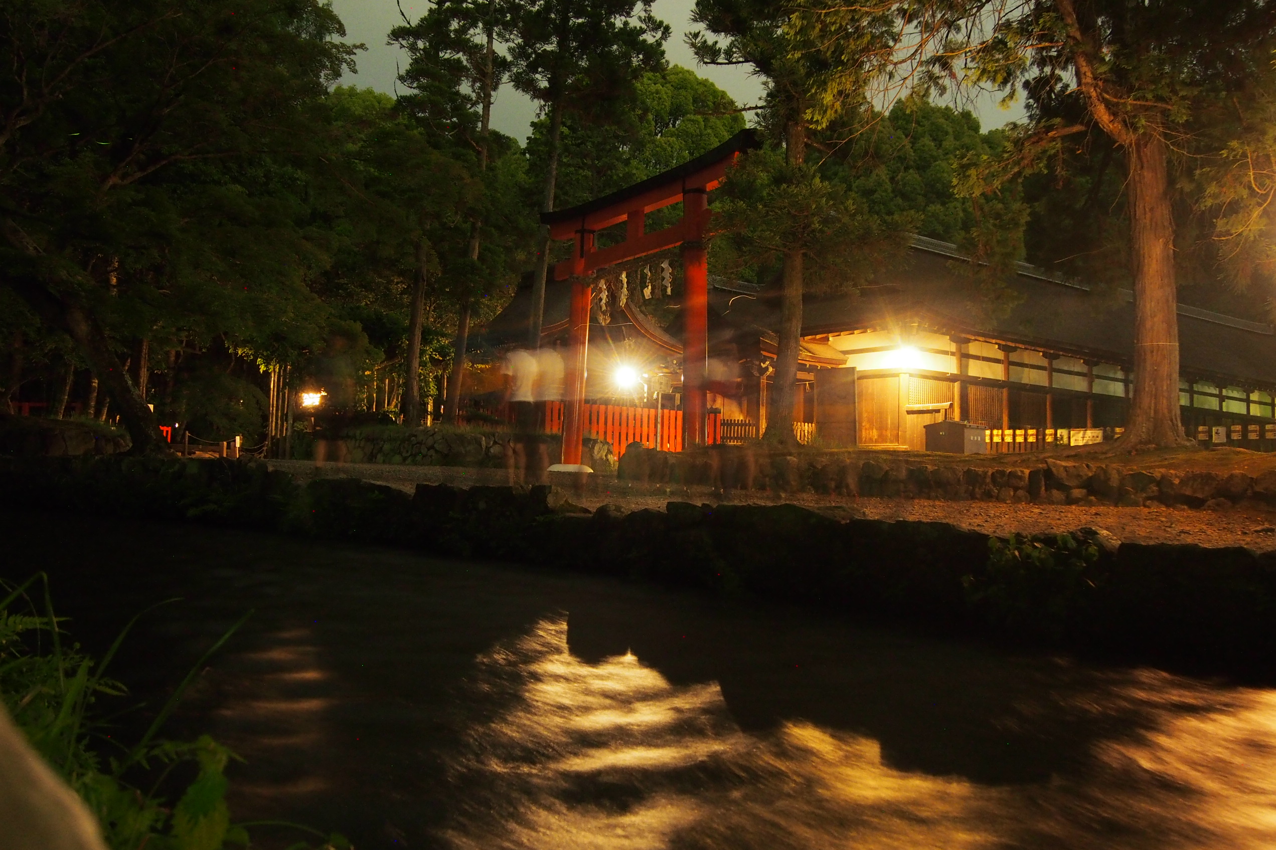ルートは糺の森をチラッと挟んで目的地の上賀茂神社へ。普段は昼間にしか行くことがない上賀茂神社も夜に行くと雰囲気がガラッと変わって面白いですね。