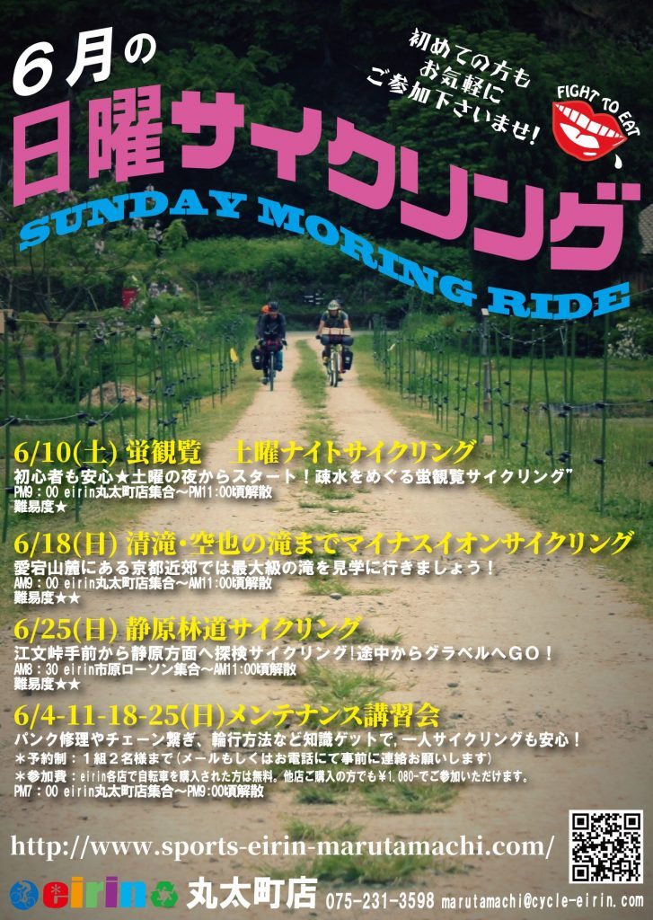 【 毎週日曜 京都市内で開催 】eirin丸太町店主催ライド イベント:【日曜サイクリング】の6月の予定はコチラからどうぞ~