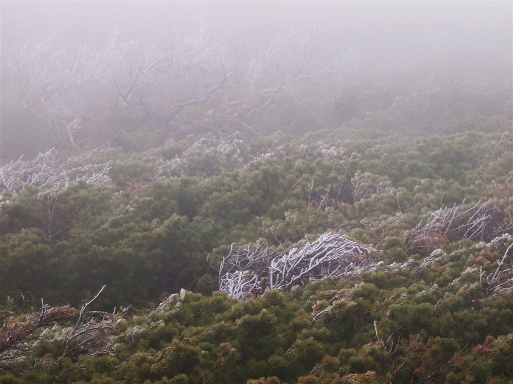 知床峠へ標高500mほどしかないのにも関わらず、森林限界おなじみハイマツの群生が。