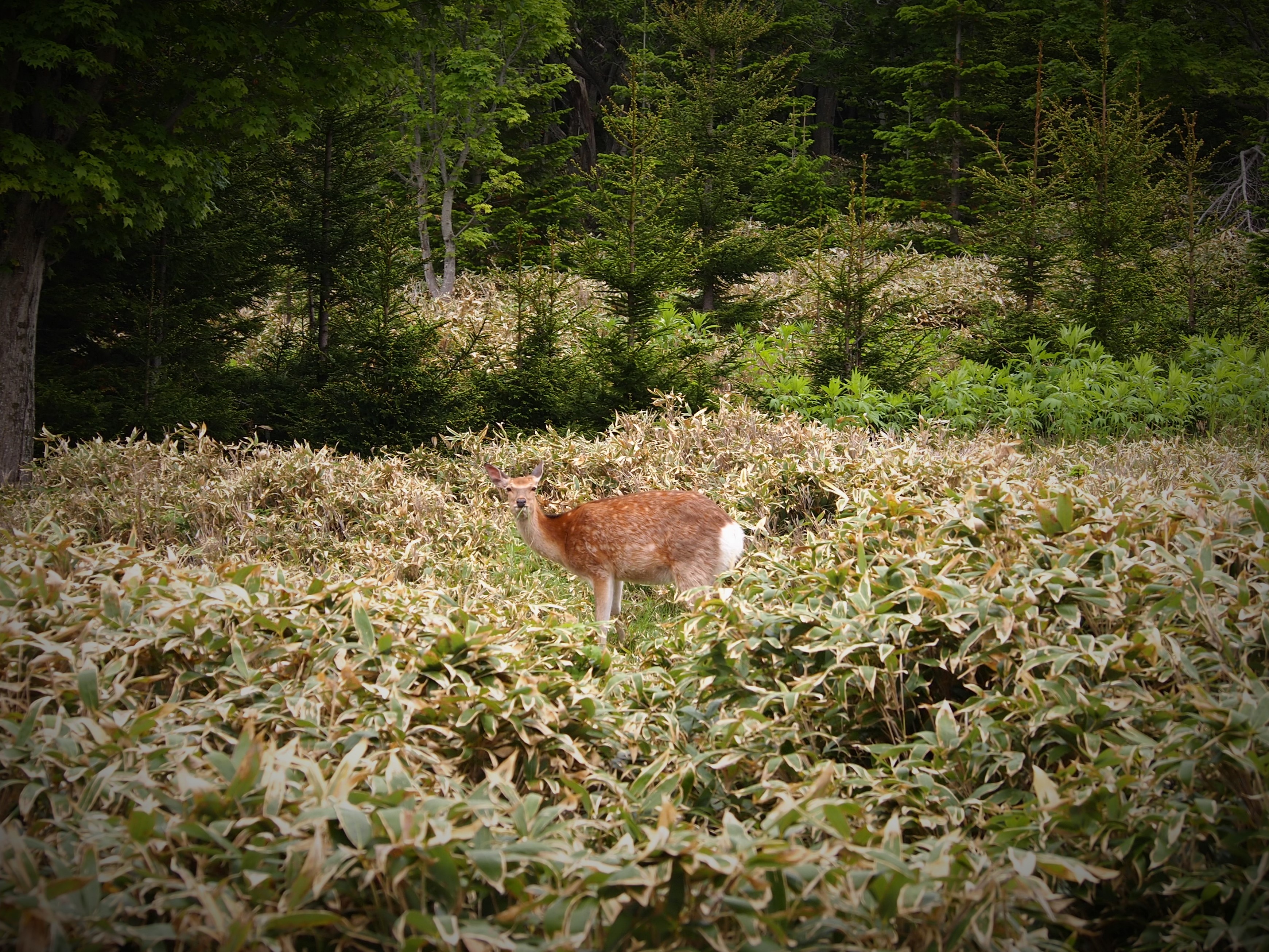 京都のシカより模様がキレイ。そしてシリが白い。この白さが森の中でも非常に目立ち、すぐに見つかります。