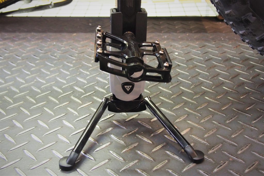 組み立ても非常に簡単です!クランクアームにシャコっとはめてあげるだけの便利なポータブルスタンド。