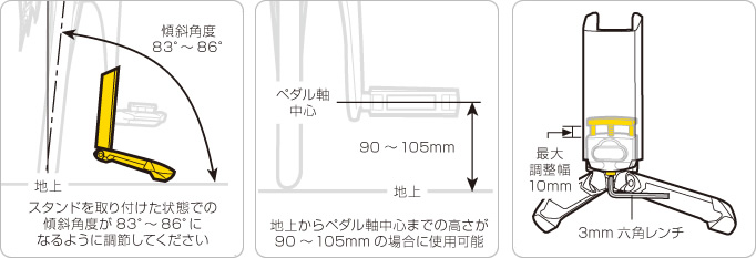工具・取付不要。クランク部に差し込んで使用する携帯ポータブルスタンド
