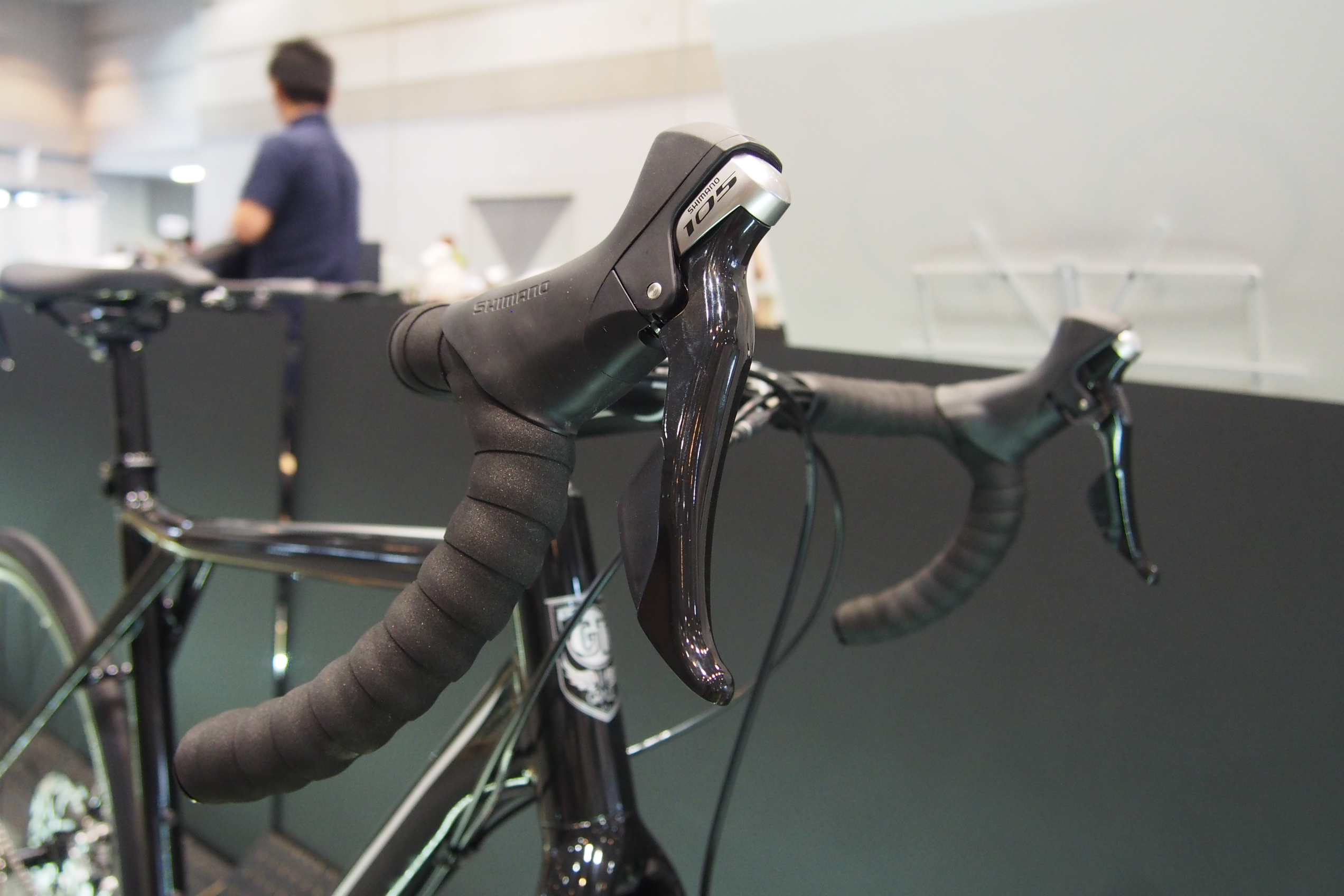 コンポーネントはSHIMANO105 油圧ブレーキを採用し、フロントは15mmスルーアクスル採用でフレームのねじれを抑制。