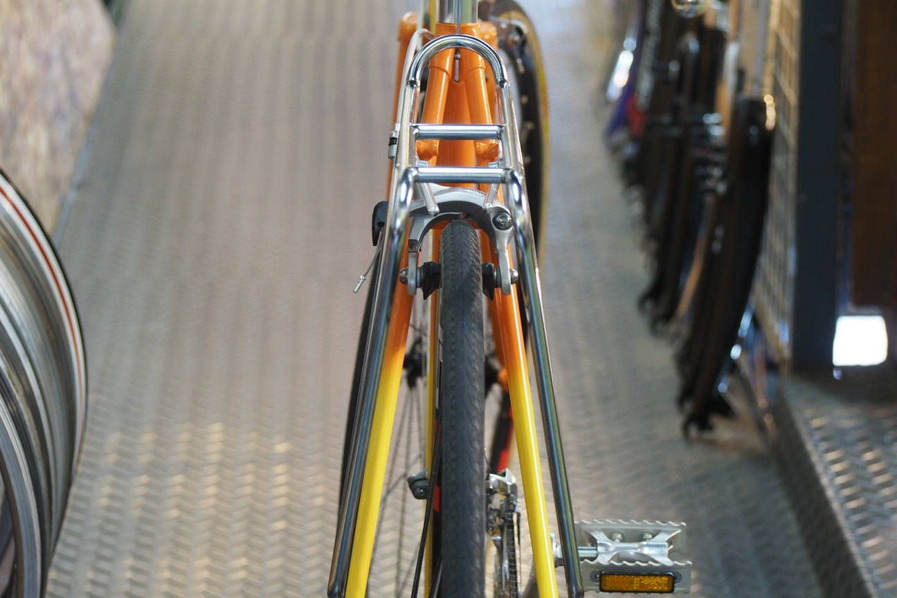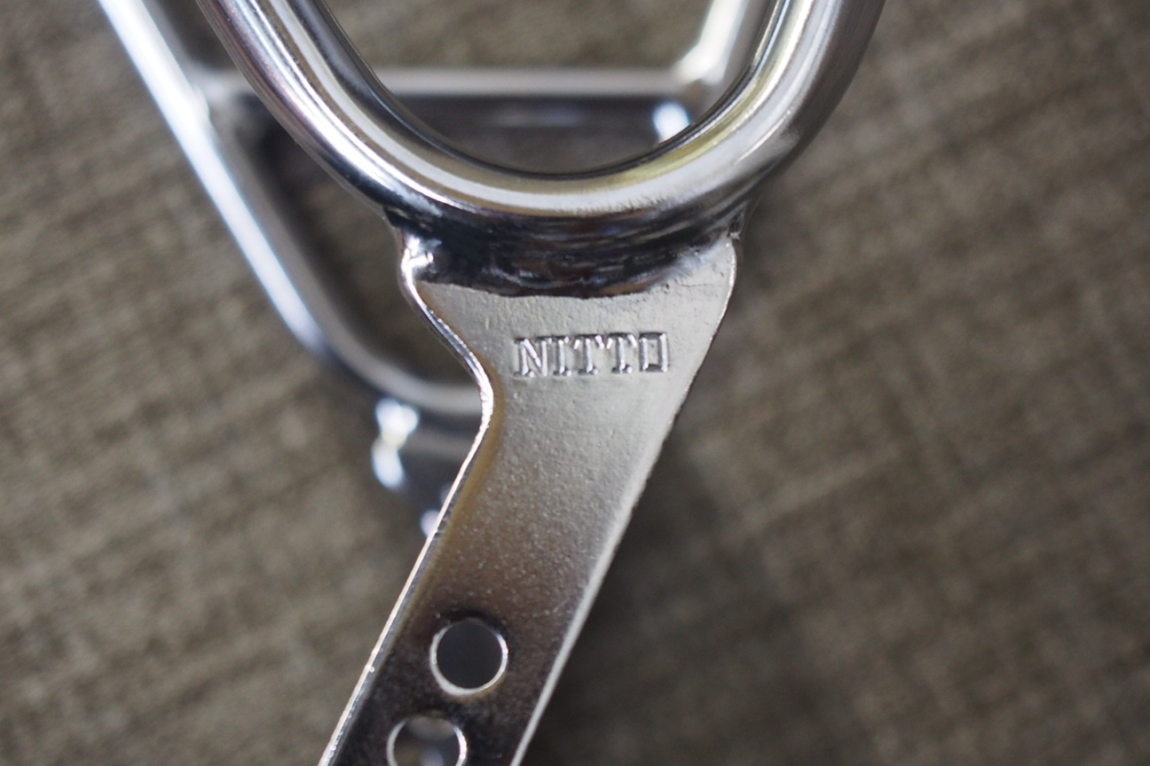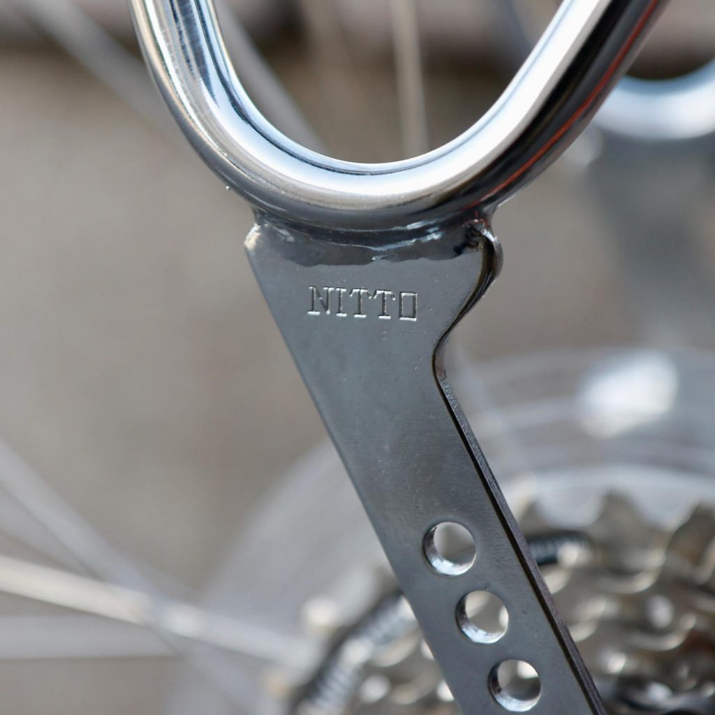 その美しいフォルムを支えるのは国産ブランドの第一人者、NITTO製によるもの。中空のクロモリパイプから成る美しいアールは見ていてうっとり。