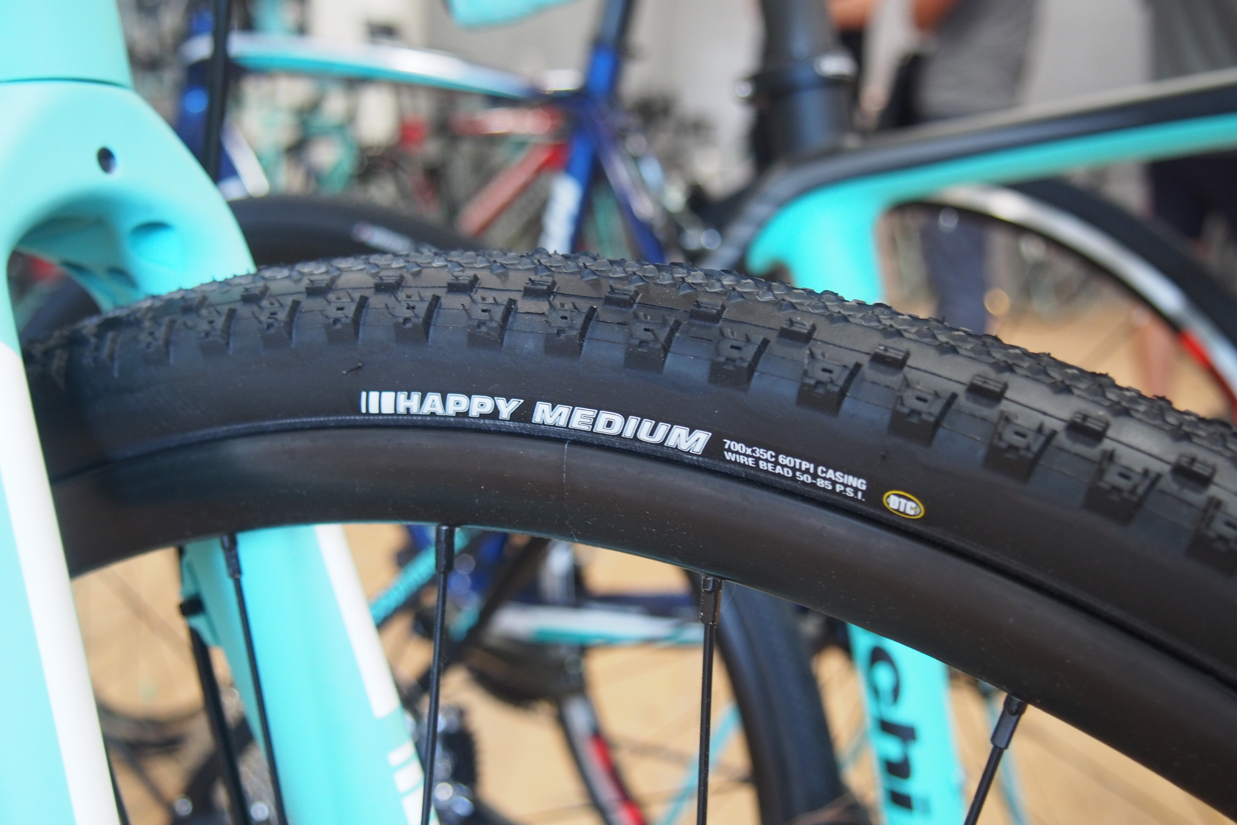 タイヤ中央はノブが低く、サイドは高いノブが配されたセミスリックタイヤ。舗装路における抵抗少なく軽快な走りを可能としながらもコーナリングでも安心してグリップし、シクロクロスのドライコンディションや、アスファルト、よく慣れた林道、砂利道などオールマイティに使いやすいタイヤが採用されております。