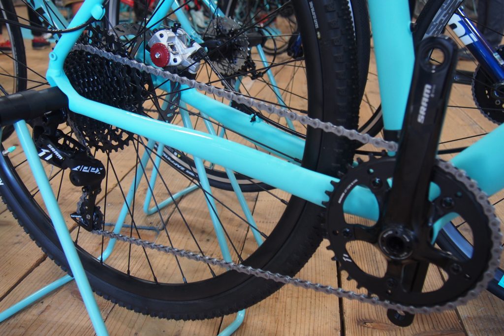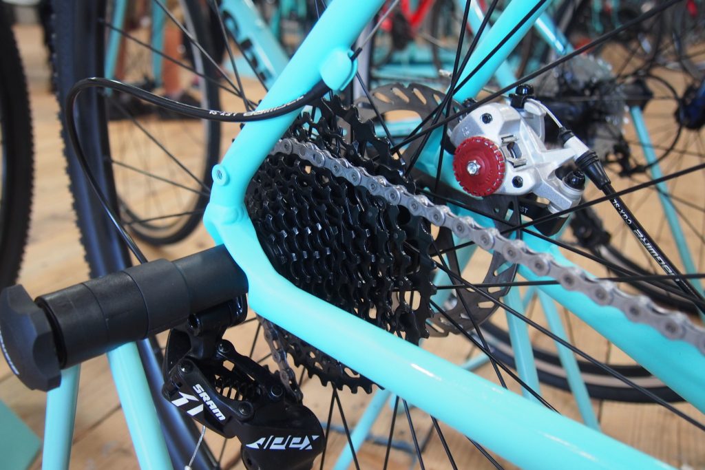 2017モデルではSHIMANO105コンポ採用でしたが、2018年度モデルでは、フロント変速をなくすことでチェーン外れトラブルを回避する昨今のシクロクロスやグラベルバイクなどのトレンド、スラム1x11SPEEDコンポーネントに仕様変更されました!。