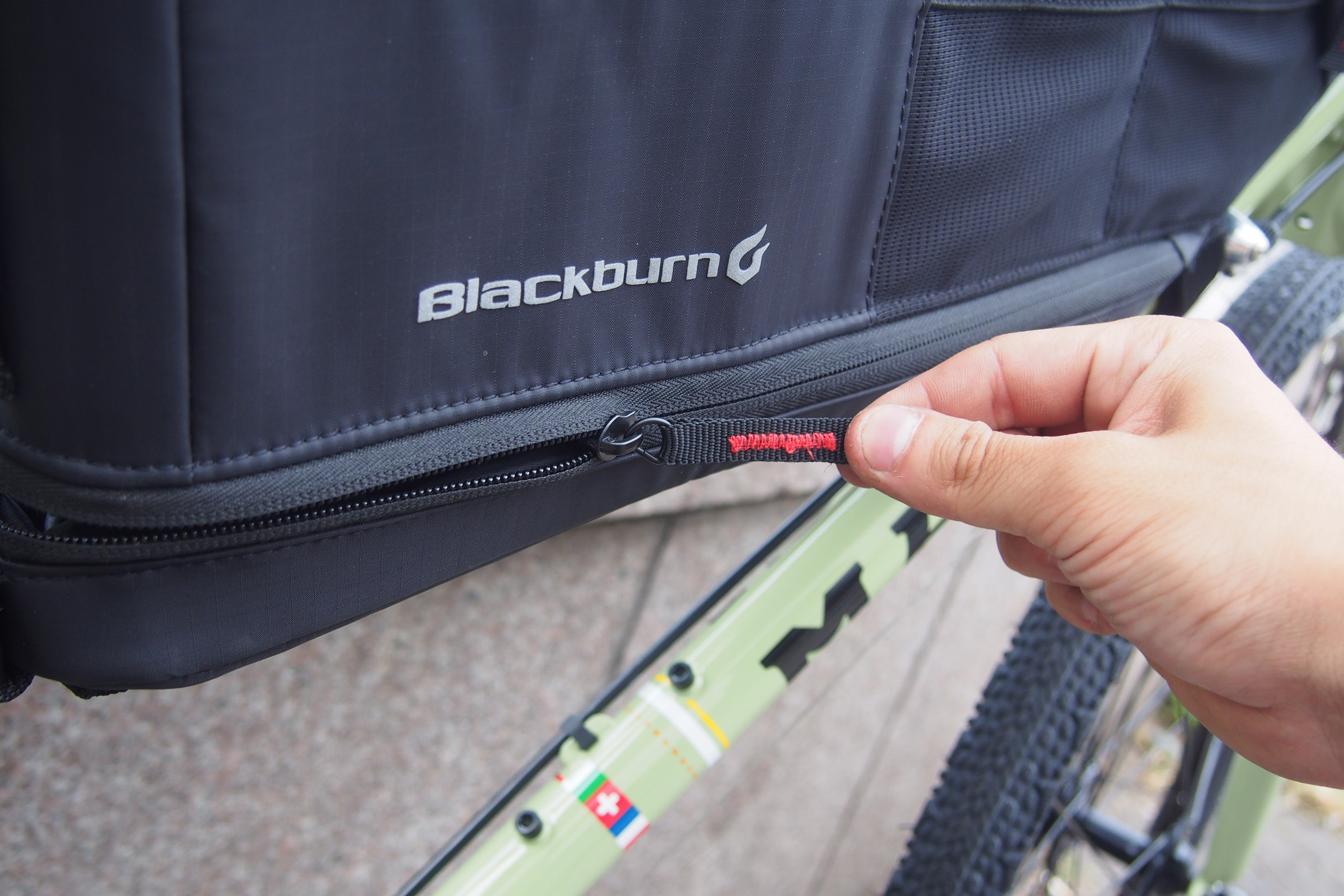ここまでの紹介ではちょっと頑丈なフレームバッグになりそうですが、そこで終わらないのがBLACKBURN。バッグ底部に付いた謎のジッパー。これをジジッーと引いてあげれば容量が1.5倍に!サイクリングの途中で荷物が増えた時でも安心のサイズ設計になります。
