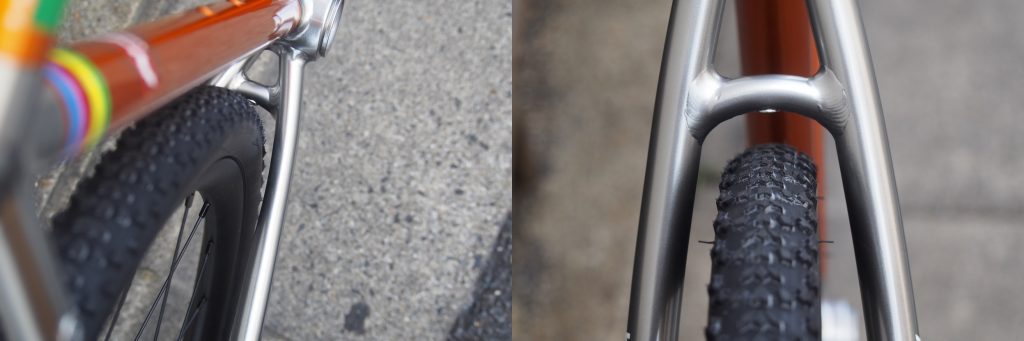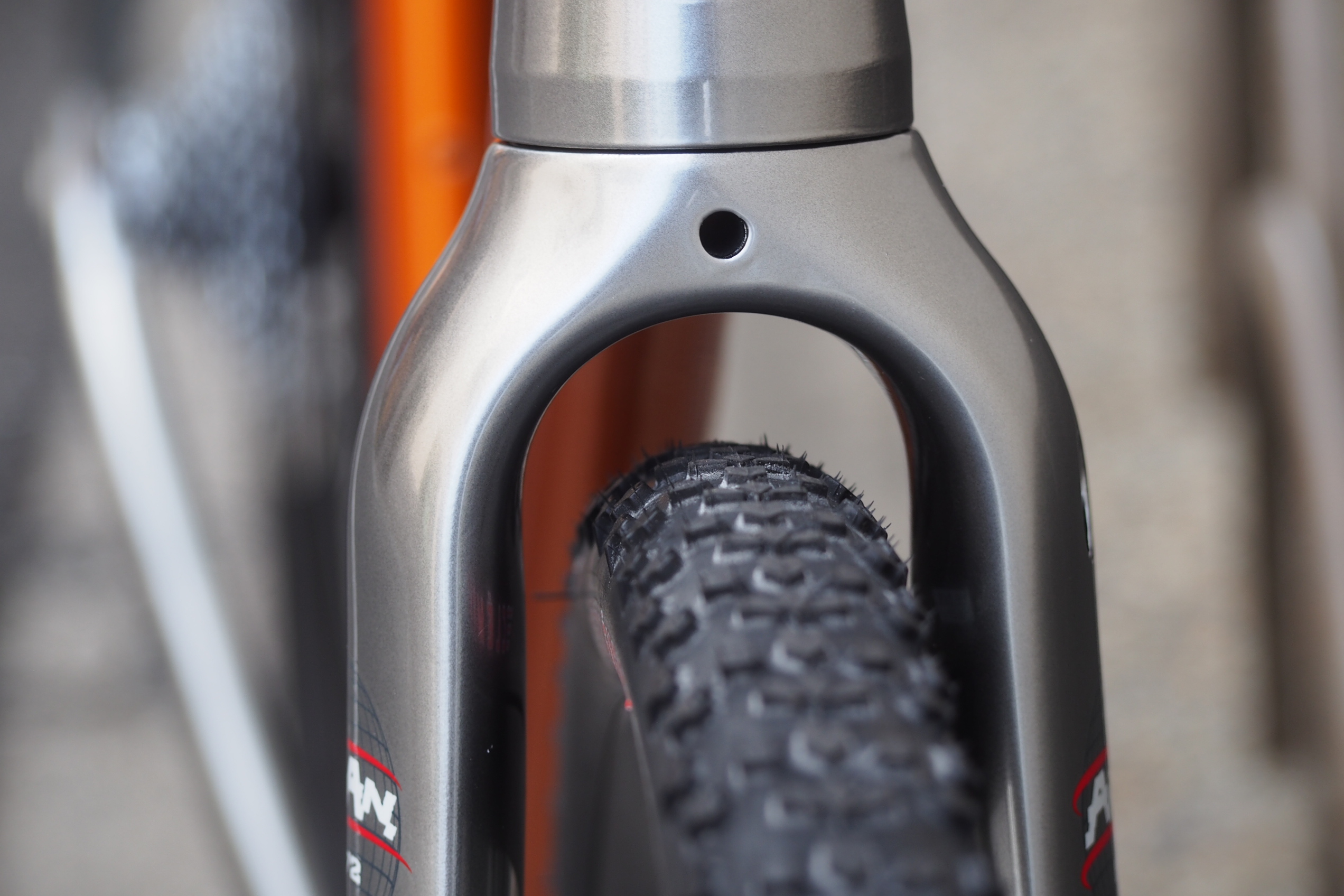 いざ林道・グラベルツーリングへとなった時にも頼もしい、マックス タイヤクリアランスは42C(画像は33C)となります。