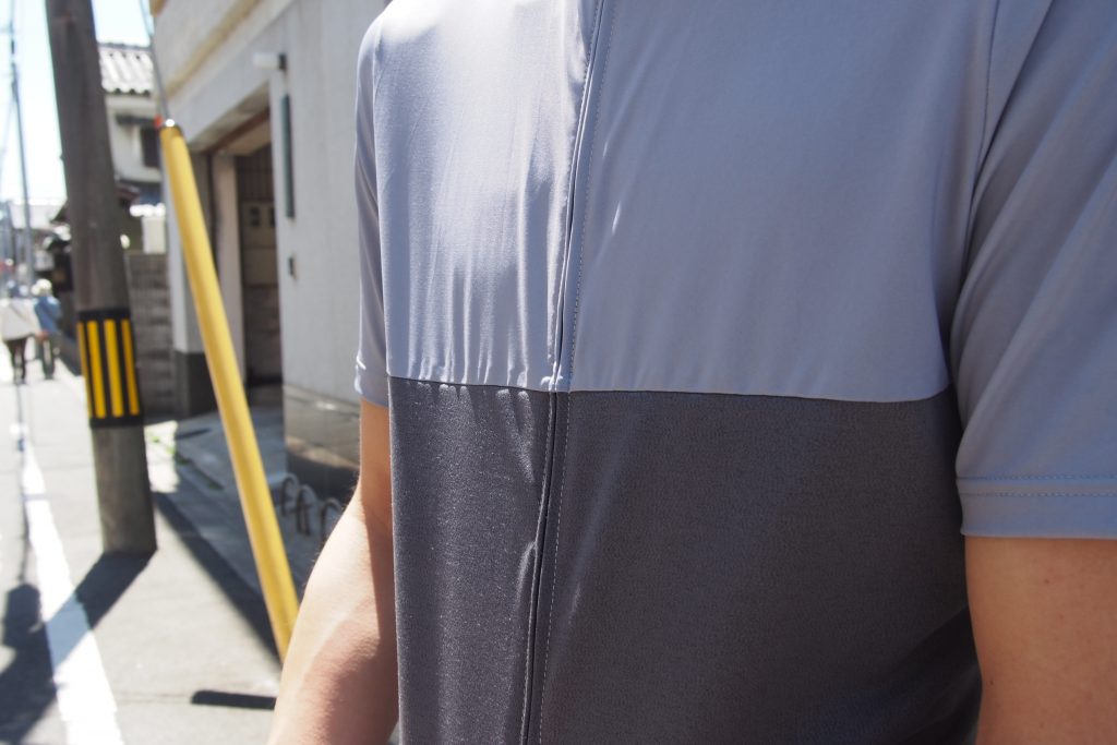 特に上半分の素材がストレッチ性の高いものとなっており、肩周りが動かしやすくなっています。