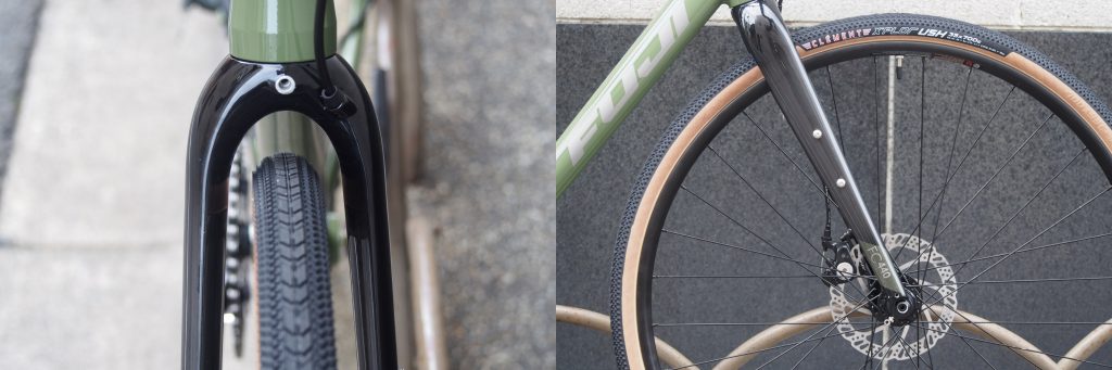 サイドにボトルゲージ台座が追加。テーパーヘッド採用フルカーボンモノコックフォーク